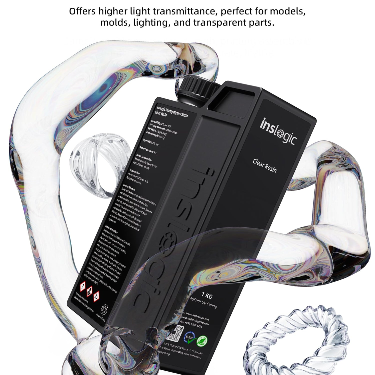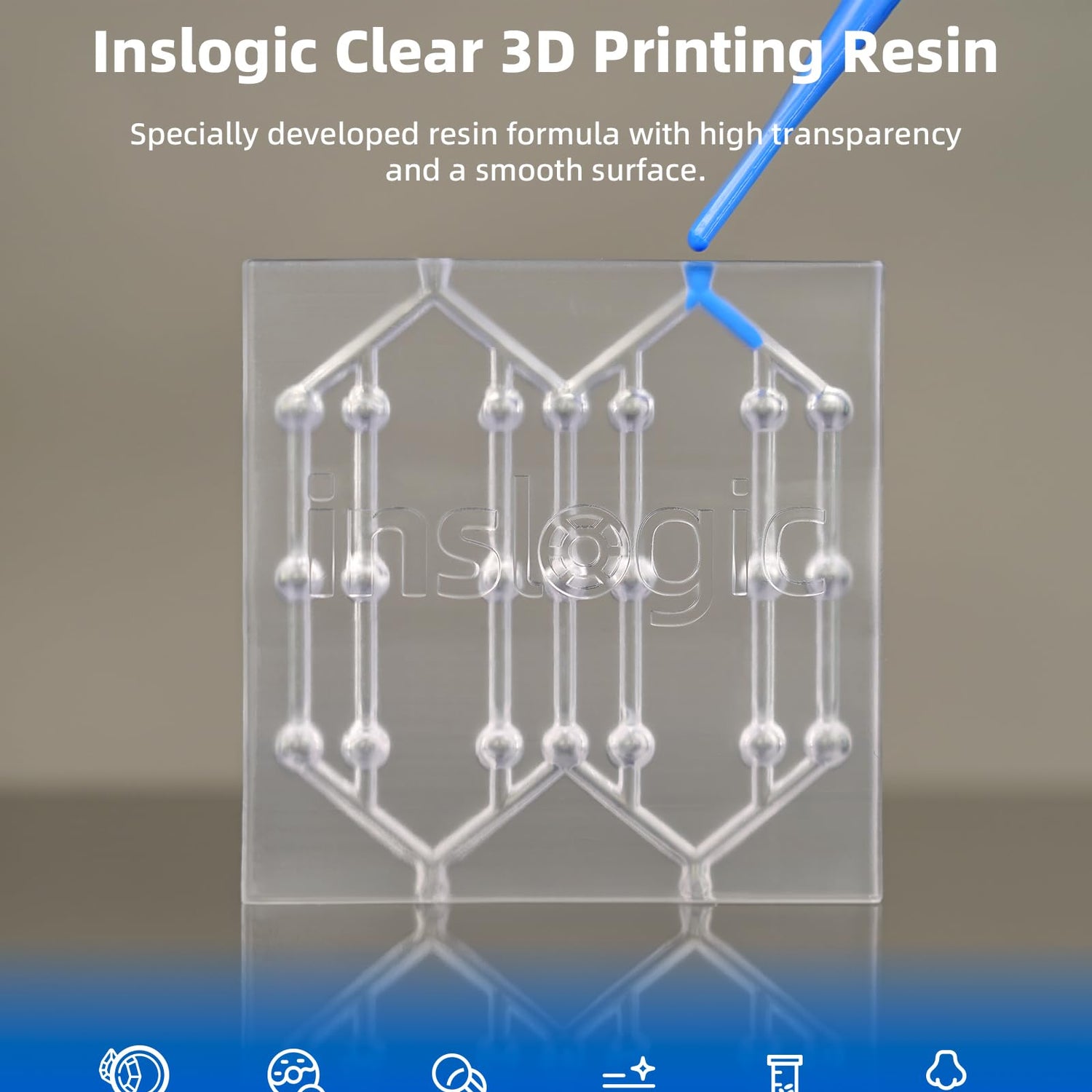 Inslogic Clear 3D Printer Resin, Yellowing & Blue Tint Resistant, Highly Transparent & High Precision & High Stability, 405nm UV-Curing Resin for LCD/DLP/SLA 3D Printing (Clear, 1kg)