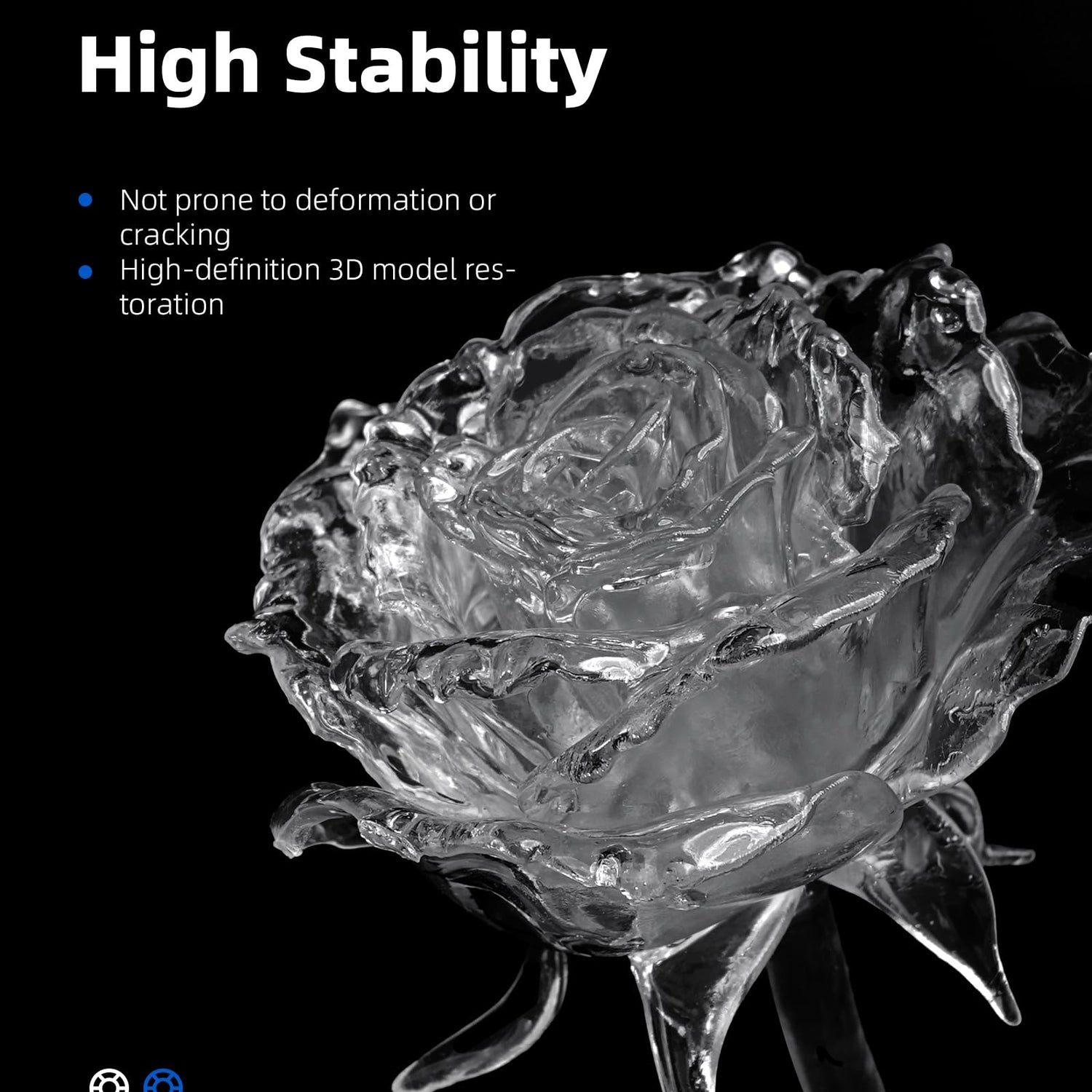 • 【Low Shrinkage & High Accuracy】Optimized Clear resin formula significantly reduces shrinkage and warping during printing, ensuring precise dimensions and high standards of print quality.