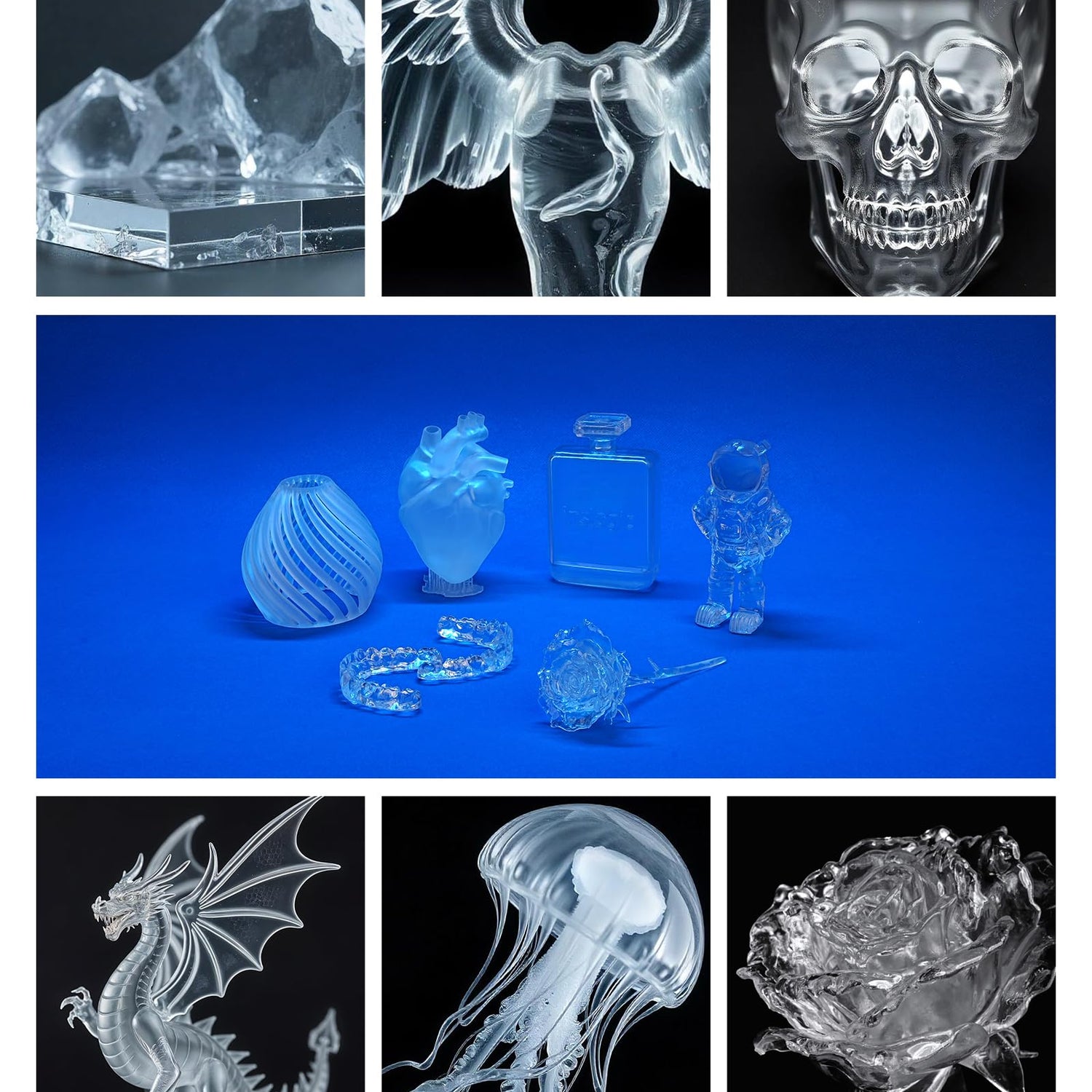 • 【Class-like Clarity After Coating】Clear resin prints may appear slightly blurry after post-processing. Polishing the printed parts with a clear coating achieves a glass-like finish with enhanced light transmittance.