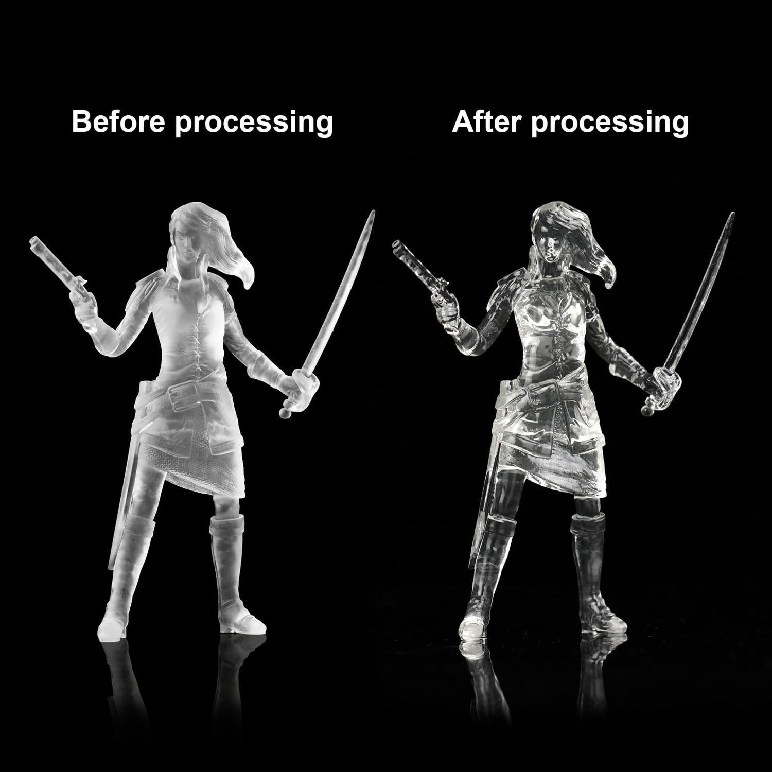 • [Lower Odor & Easy Post Processing] - Clear Pro 3D printing resin produces lower odor, creating a more comfortable printing environment for users. Clear Pro has low viscosity and smooth surface, making it non-sticky, and easy to clean and sand. Please note that the printed model is whitish after curing and needs to be sanded and sprayed with varnish to become transparent.