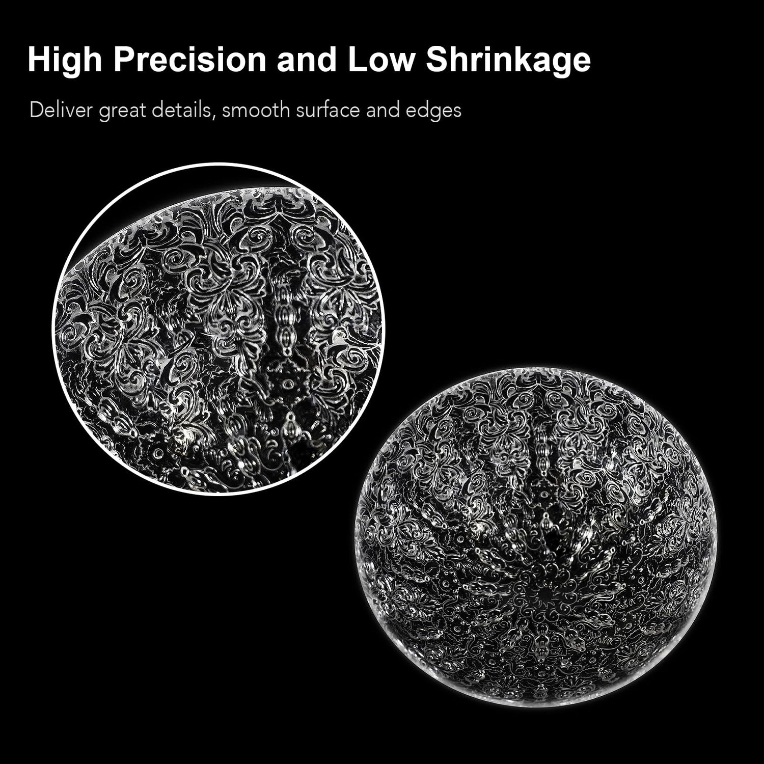 • [Ultra High Transparency] - NextShapes Clear Pro Resin presents outstanding transparency and glass-like texture with a light transmittance of over 90%. The printed models are highly transparent and with almost no bubbles, making them ideal for aesthetic design.