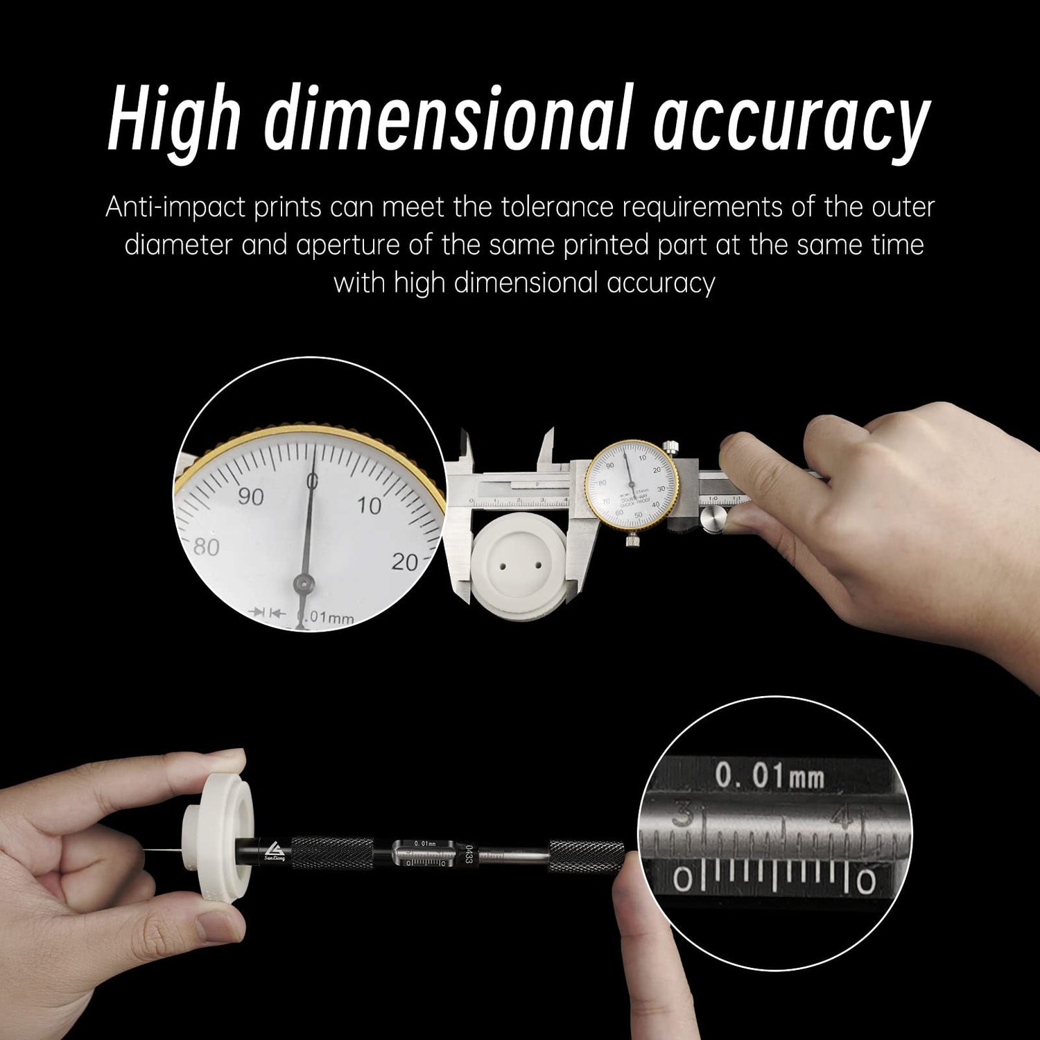 - High dimensional accuracy, fine and wear-resistant surface: Anti-impact prints can meet the tolerance requirements of the outer diameter and aperture of the same printed part at the same time, with high dimensional accuracy. And the special formula makes the printing surface smooth and delicate, wear-resistant and scratch resistant.