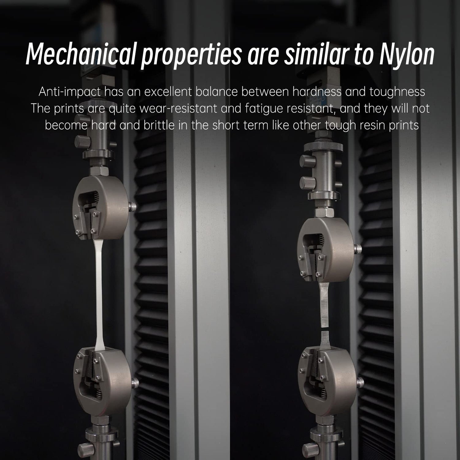 - Mechanical properties are similar to nylon and stable for a long time: The prints are quite wear-resistant and fatigue resistant, and the mechanical properties are similar to that of thermoplastic material--nylon. In addition, Anti-impacts prints will not become hard and brittle in the short term like other tough resin prints, their mechanical properties are stable for a long time, and they are suitable for printing impact-resistant, snap-on or movable parts, or even end-use products