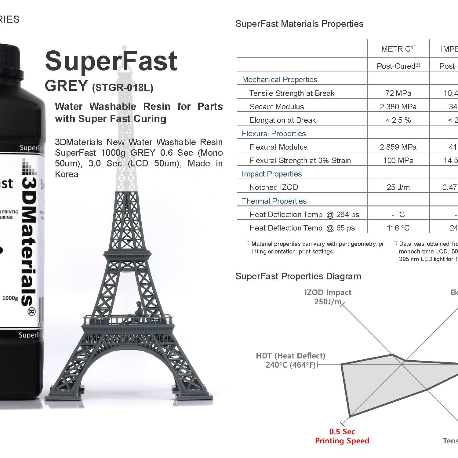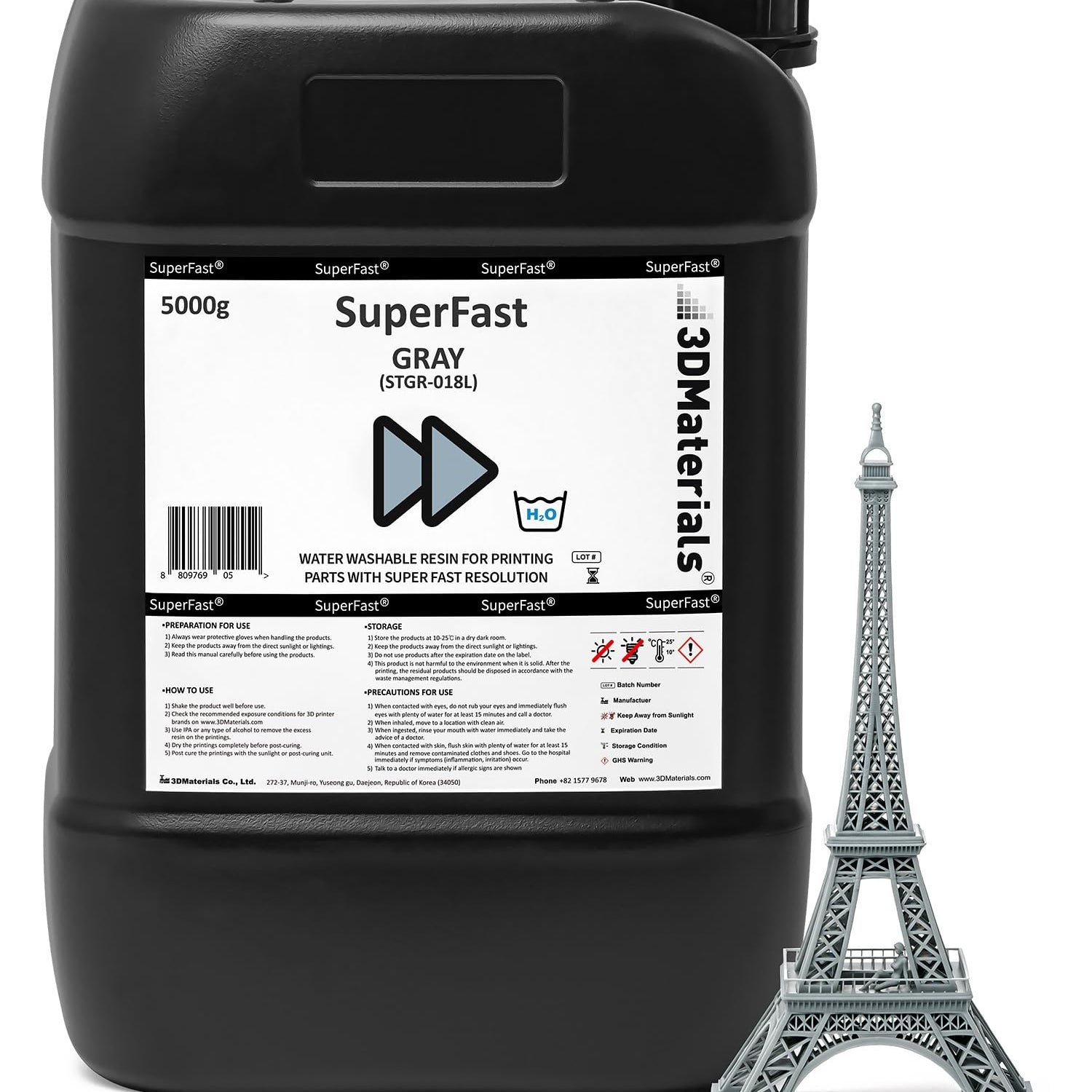 SuperFast 4K 3D Printer Resin Water Washable, 50um Print in 0.6 sec, Made in Korea by 3DMaterials (5000g, Grey)
