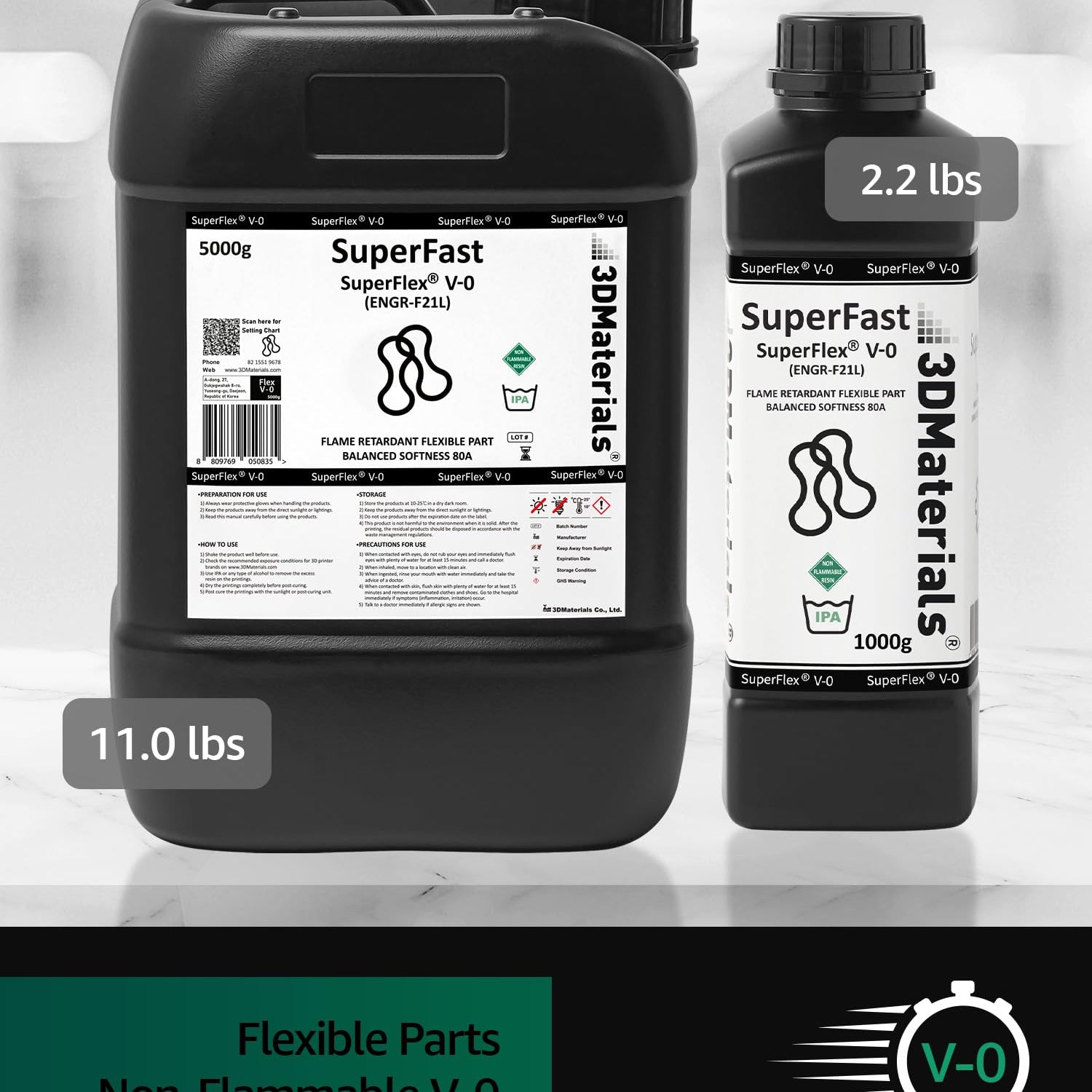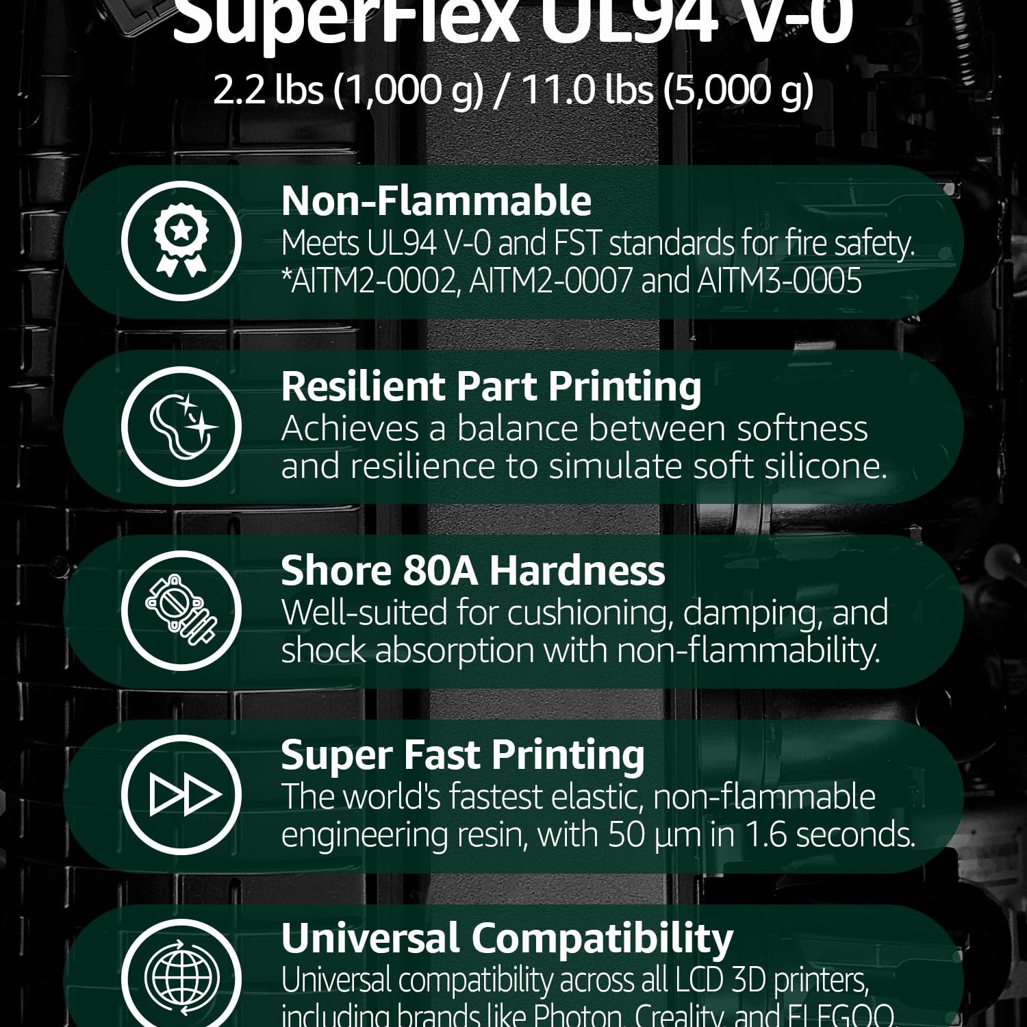 Superflex UL94 V-0, 3D Printer Resin, Flame-Retardant Parts Simulating Flexible Rubber 80A, Made in Korea by 3DMaterials (5000g, Black)