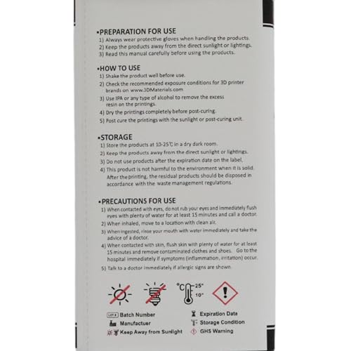 - [8K Precision] Extremely low viscosity allow for high-resolution 8K 3D printing of objects at high speed with 22um resolution.