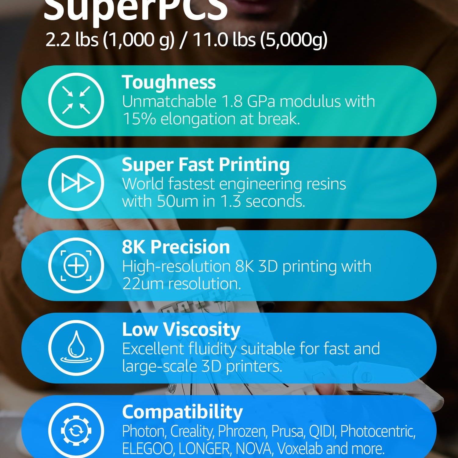 - [Compatible to All LCD Printers] Unique photosensitization technology make SuperPCS compatible for all kind of regular and mono LCD 3D printers.