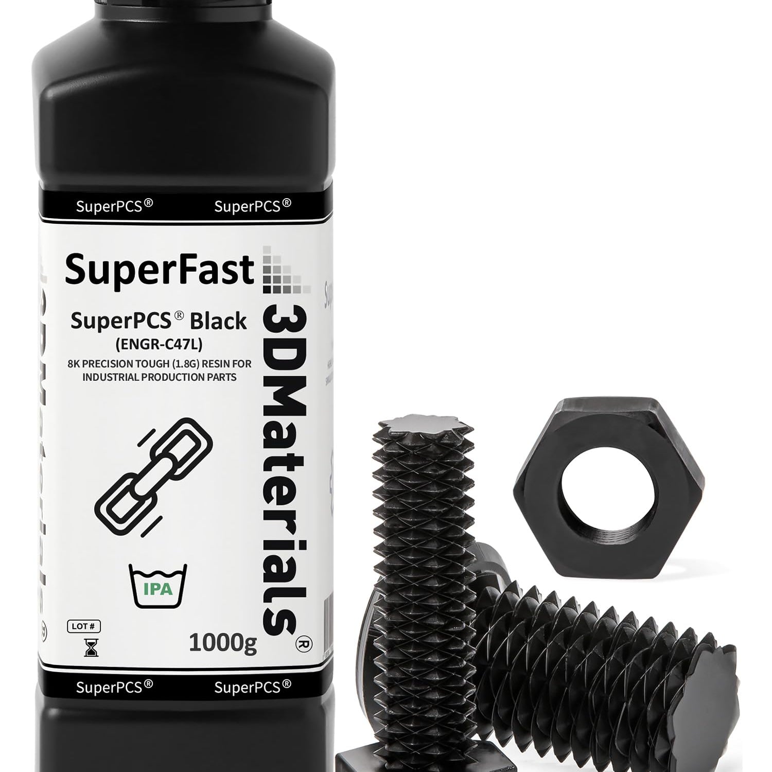 SuperPCS 3D Printer Resin, Toughest and Fastest, 50um 1.8GPa Print in 1.5 sec, Made in Korea by 3DMaterials (1000g, Black)