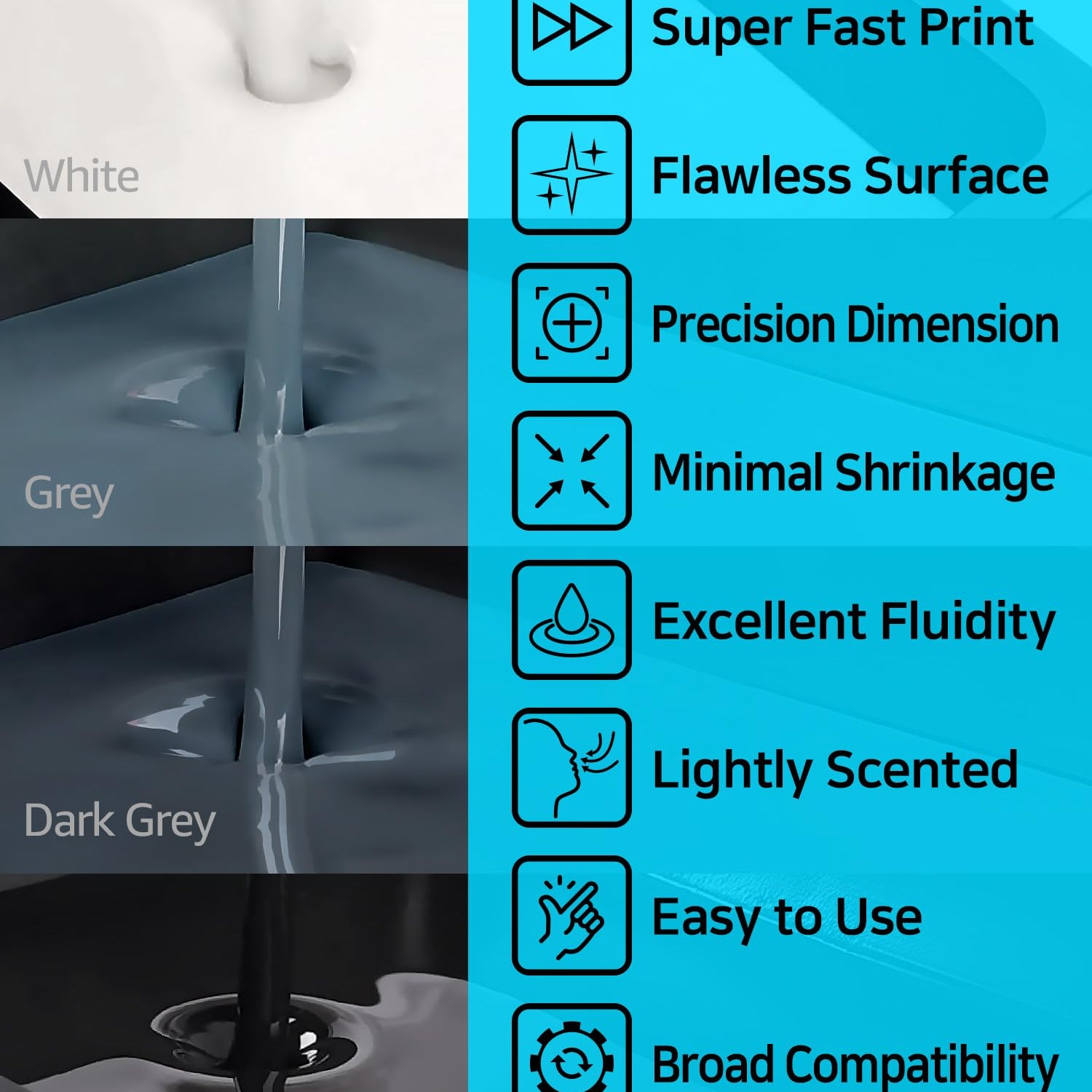 - [8K Precision] Extremely low viscosity allow for high-resolution 8K 3D printing of objects at high speed with 22um resolution.