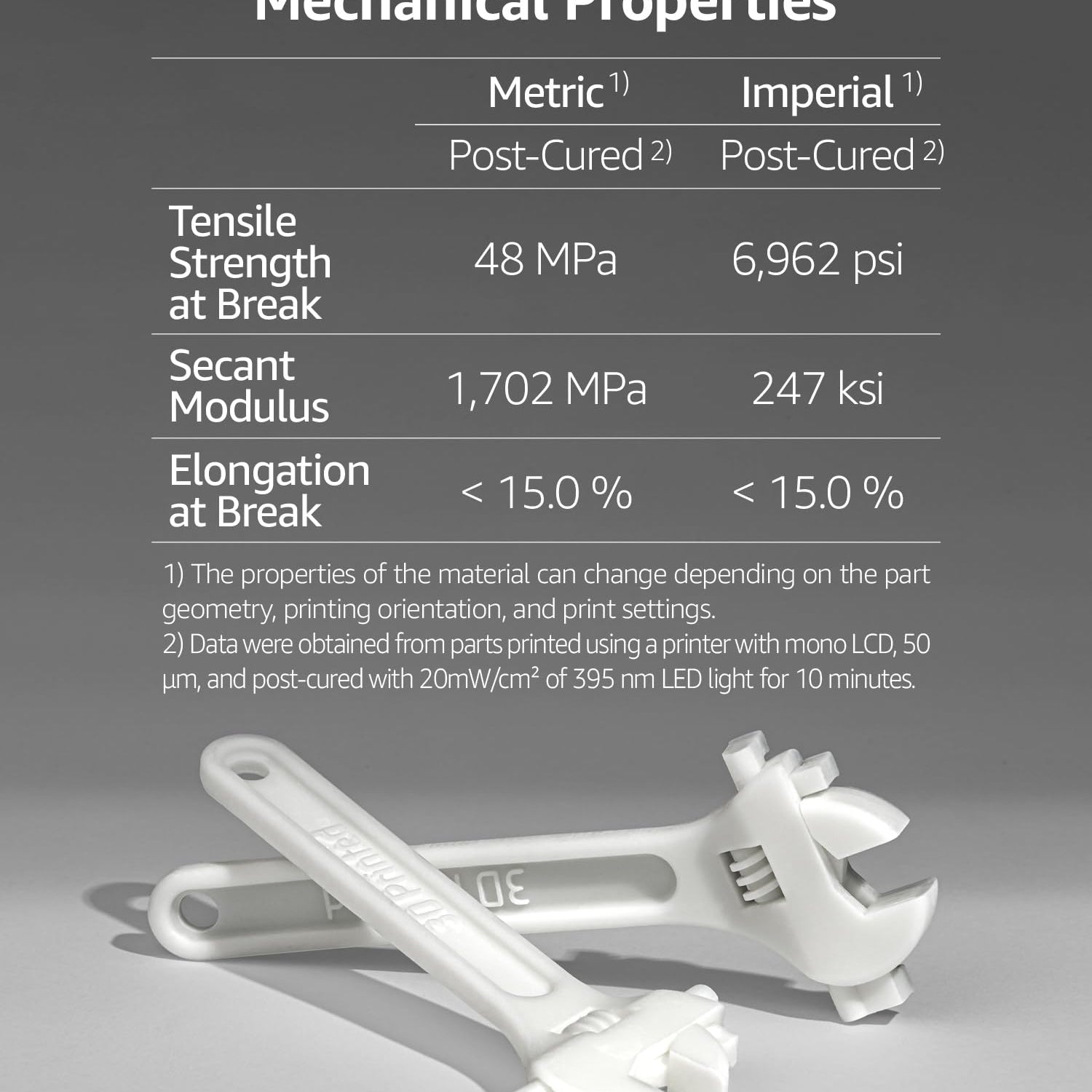 Details: [Fast Printing] Unique photosensitization technology developed by 3DMaterials allow for curing 50um layer in 1.5 sec with monochrome LCD (compatible for Photon Mono, Mono X) and in 3.0 sec with Regular LCD (compatible for Phrozen, ELEGOO, LONGER, Voxelab).