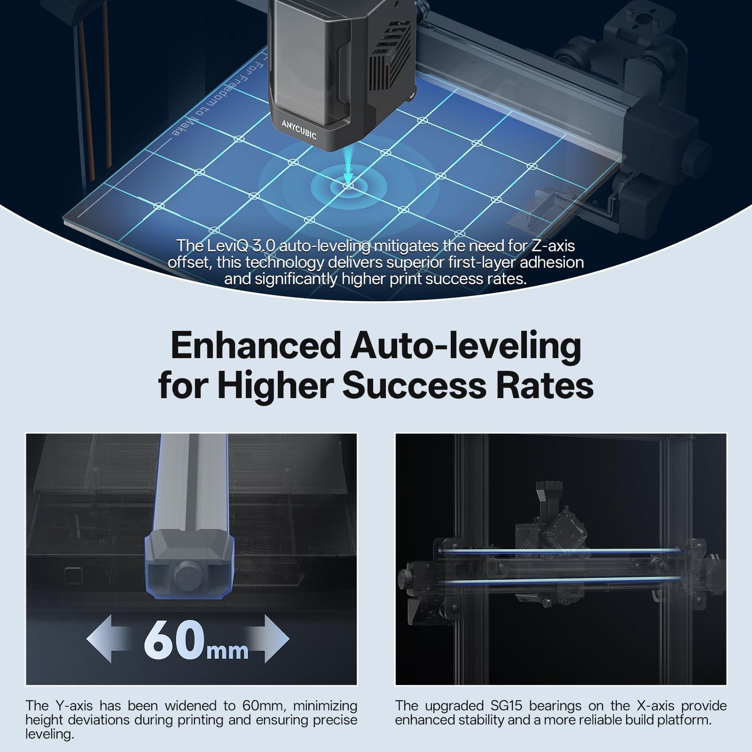 - 【Enhanced Auto-leveling for Higher Success Rates】The LeviQ 3.0 auto-leveling mitigates the need for Z-axis offset, this technology delivers superior first-layer adhesion and significantly higher print success rates