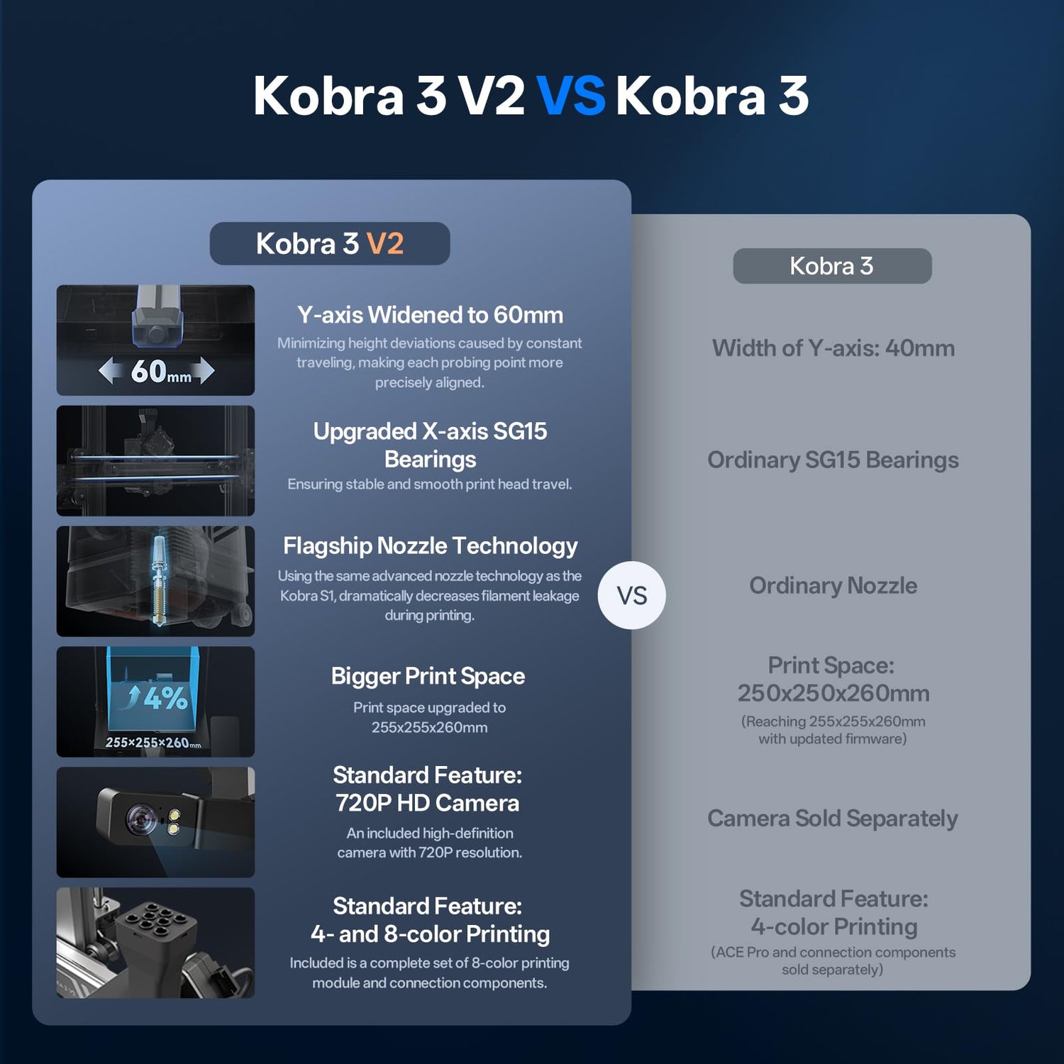 - 【Note】This product includes only Anycubic Kobra 3 V2 3D printer. It does not include Anycubic ACE Pro. For multi-color printing, you will need the Anycubic ACE Pro as an add-on: 1x ACE Pro → Enables 4-color printing, 2x ACE Pro + 8-Color Filament Hub →Enables 8-color printing. To obtain the best printing experience, please select the correct ACE Pro version before purchasing