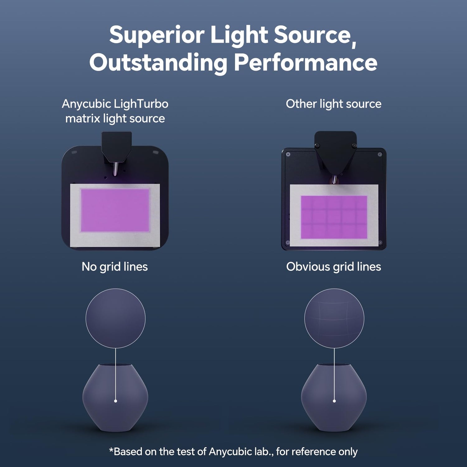 - 【Stabilized Light Source】Anycubic LighTurbo matrix light source system ensures ultra-stable layer curing for smoother surfaces and near-invisible layer lines. Achieve rapid 1.5-second exposures – print faster without sacrificing detail