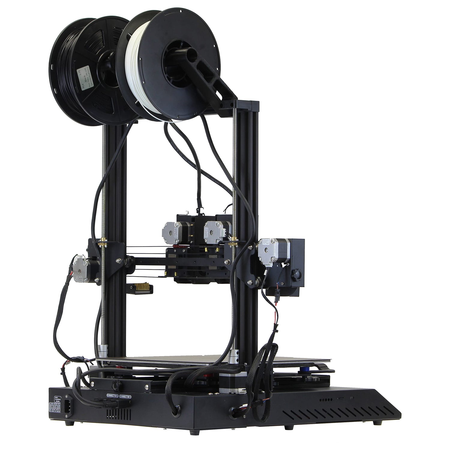 - ăIndependent Dual Extruder DesignăOur TL-D3 Pro dual extruder 3D printer has dual nozzles independent of each other, so you can print in dual material/duplication/mirror mode. With dual material printing mode, you can get two color models. Choose duplication or mirror mode, you can get two models of the same color or different colors.