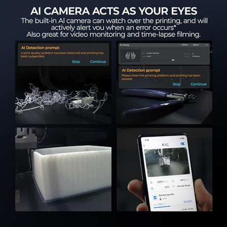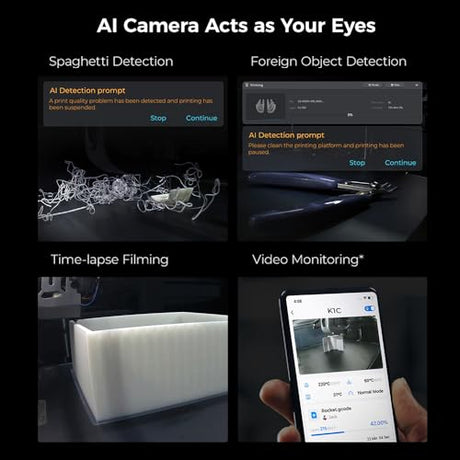 • Anycubic Kobra S1 3D Printer, 600mm/s Fast Speed Printing with CoreXY Structure, 320℃ Hotend Anti-Clogging Extruder and 44dB Ultra Quiet, Built-in Camera and AI Monitoring, Size 250 * 250 * 250mm ANYCUBIC