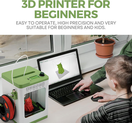 • Denash High Accuracy 3D Printer, Beginner Friendly, Compact Size, Fast Heating, Educational Tool, Robust ABS Material, Small 3D Printer with 100x100x100mm Printing Size (White) Denash