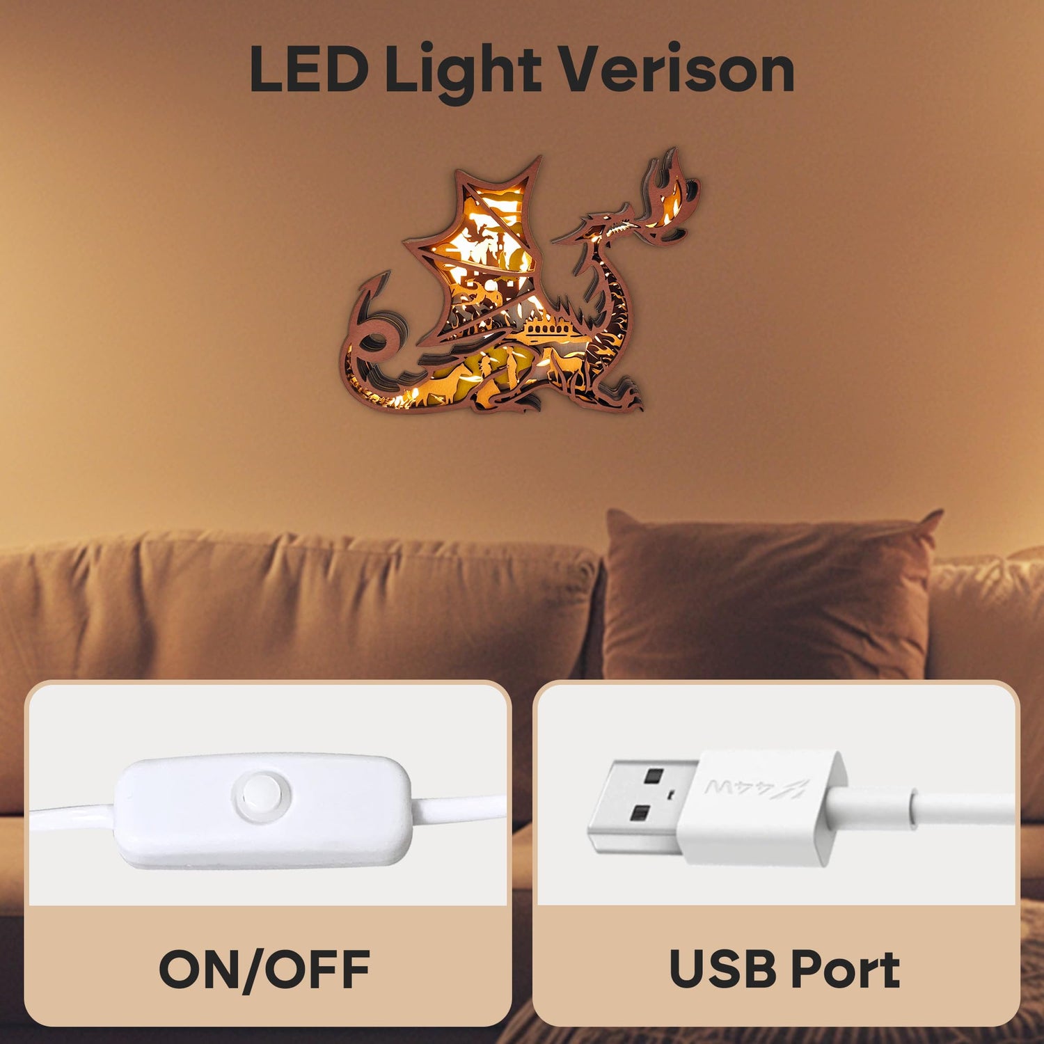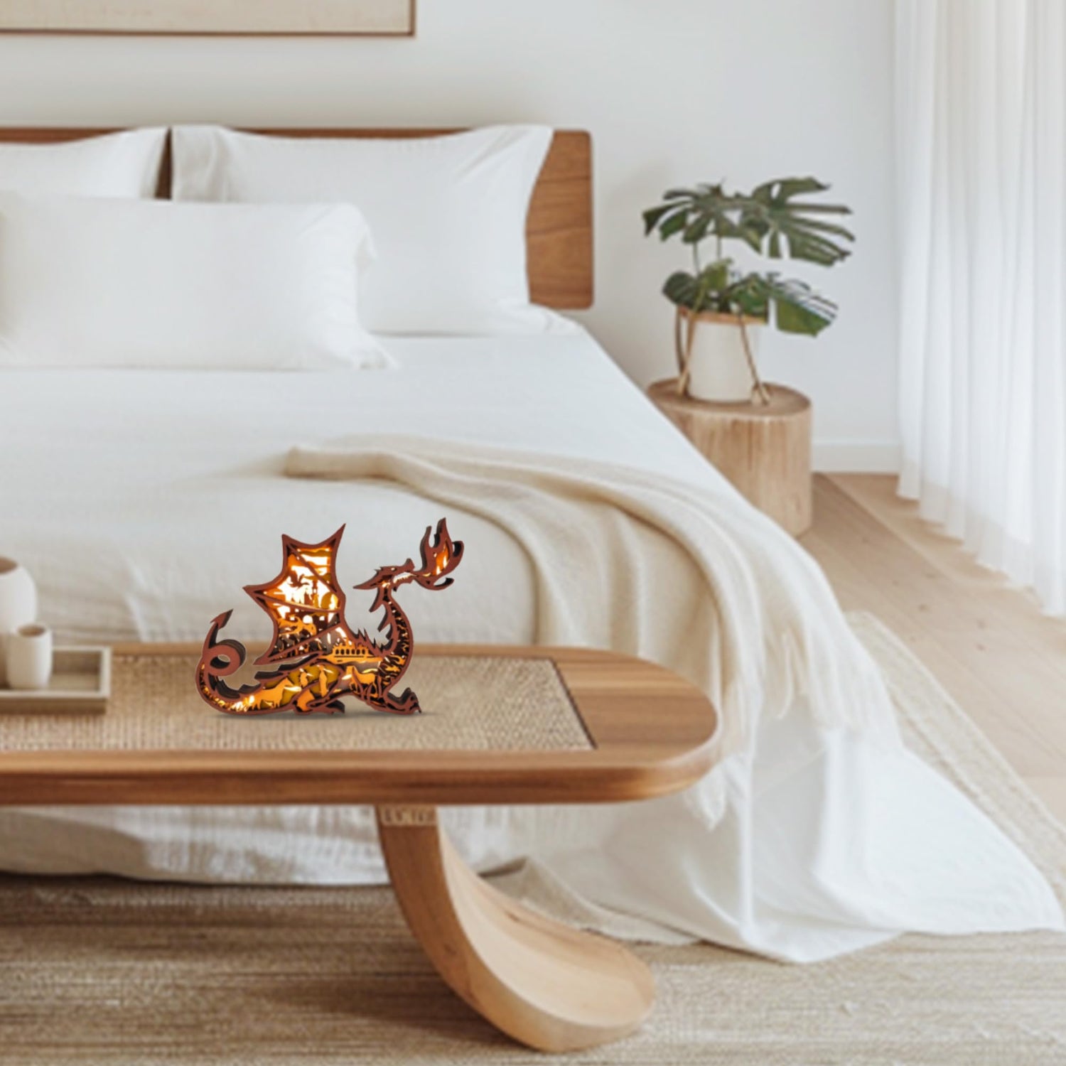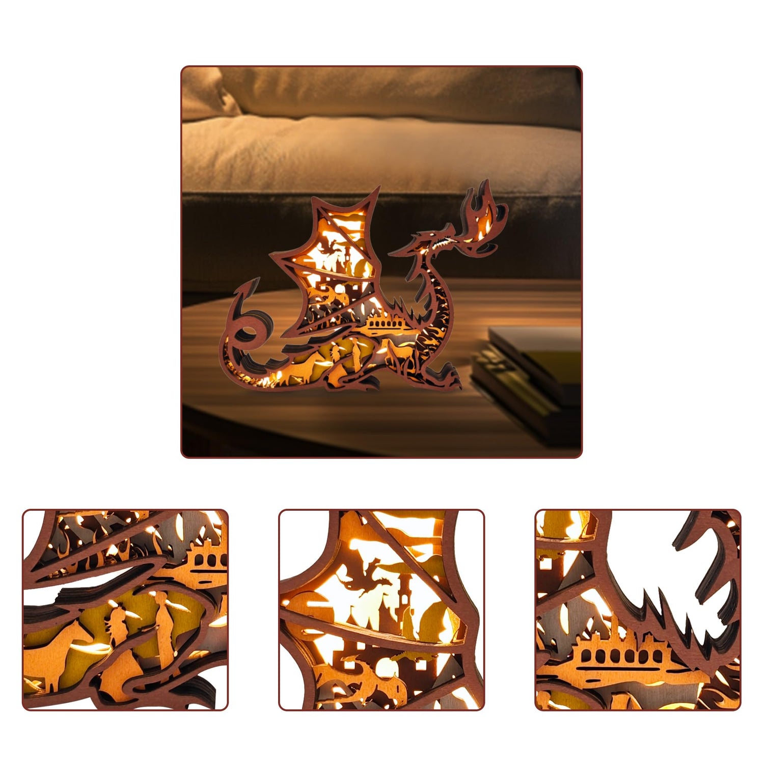 - Exceptional Craftsmanship: Our 3D Wooden Animals Carving LED Night Light boasts meticulous attention to detail and craftsmanship. Crafted from premium boxwood, our piece exhibits durability and lasting strength. With the depiction of a dragon emanating power and mystique, and finished with a matte lacquer for both style and protection, our product exudes quality.