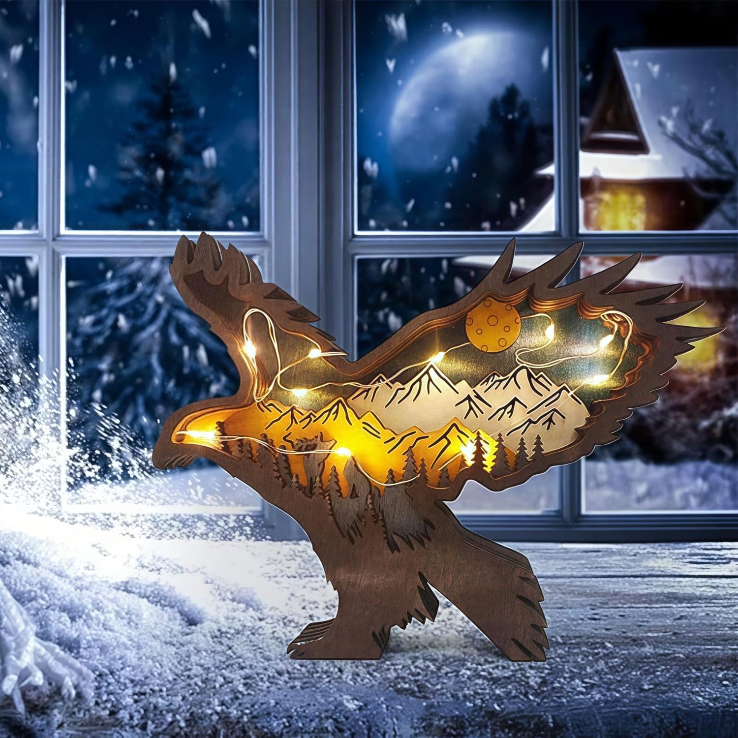 Drawelry 3D Wood Carving Animals Lamp Home Decorative, Cute Bear Family Elephant Presents Ideas Christmas Living Room Office Decor Warm LED Night Lights Gift for Friend Daughter Son Mom Dad (Eagle)