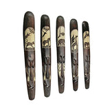 Set of 5 Hand Carved Brown Wood African Style Decorative Tribal Masks Wall Decor 39 Inches High