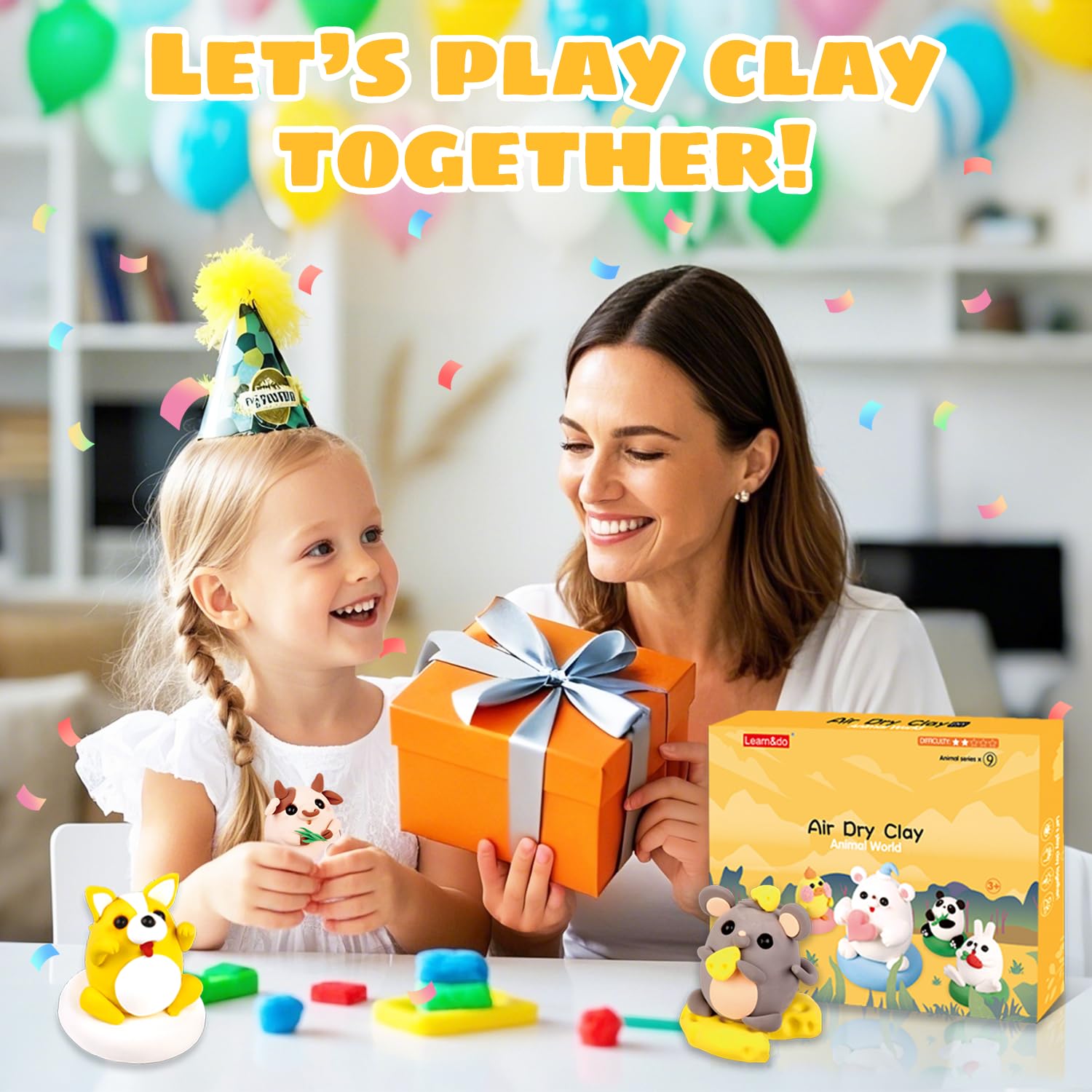 Air Dry Clay Kits: 9 DIY Animal Clay Kit for Kids 3+, Child-Safe Modeling with Guides, Creative Birthday & Holiday Gift for Boy & Girl