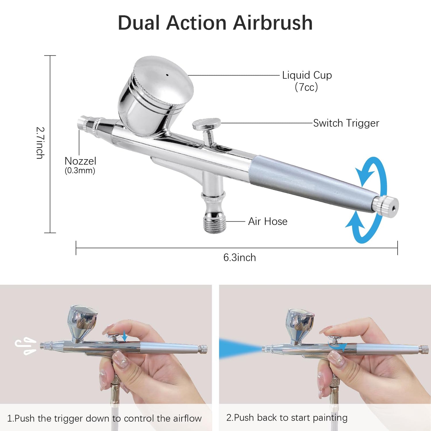 - [0.3mm Fluid Nozzle]:The airsoft gun features a 0.3mm needle and nozzle combination for better control of paint flow and airflow,reducing splatters and improving your ability to produce detailed work without wasting large amounts of paint.NOTE:All paints must be thinned