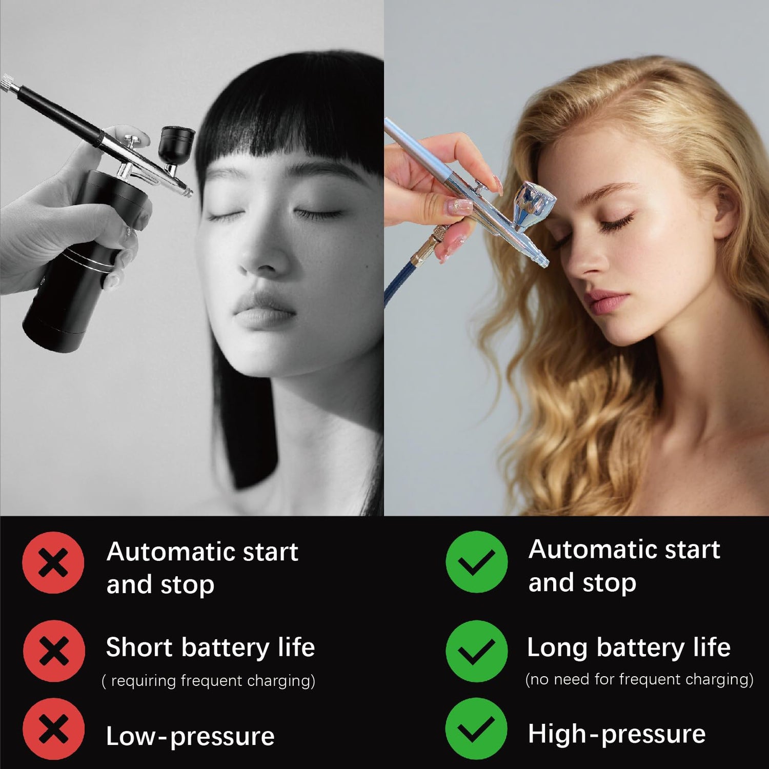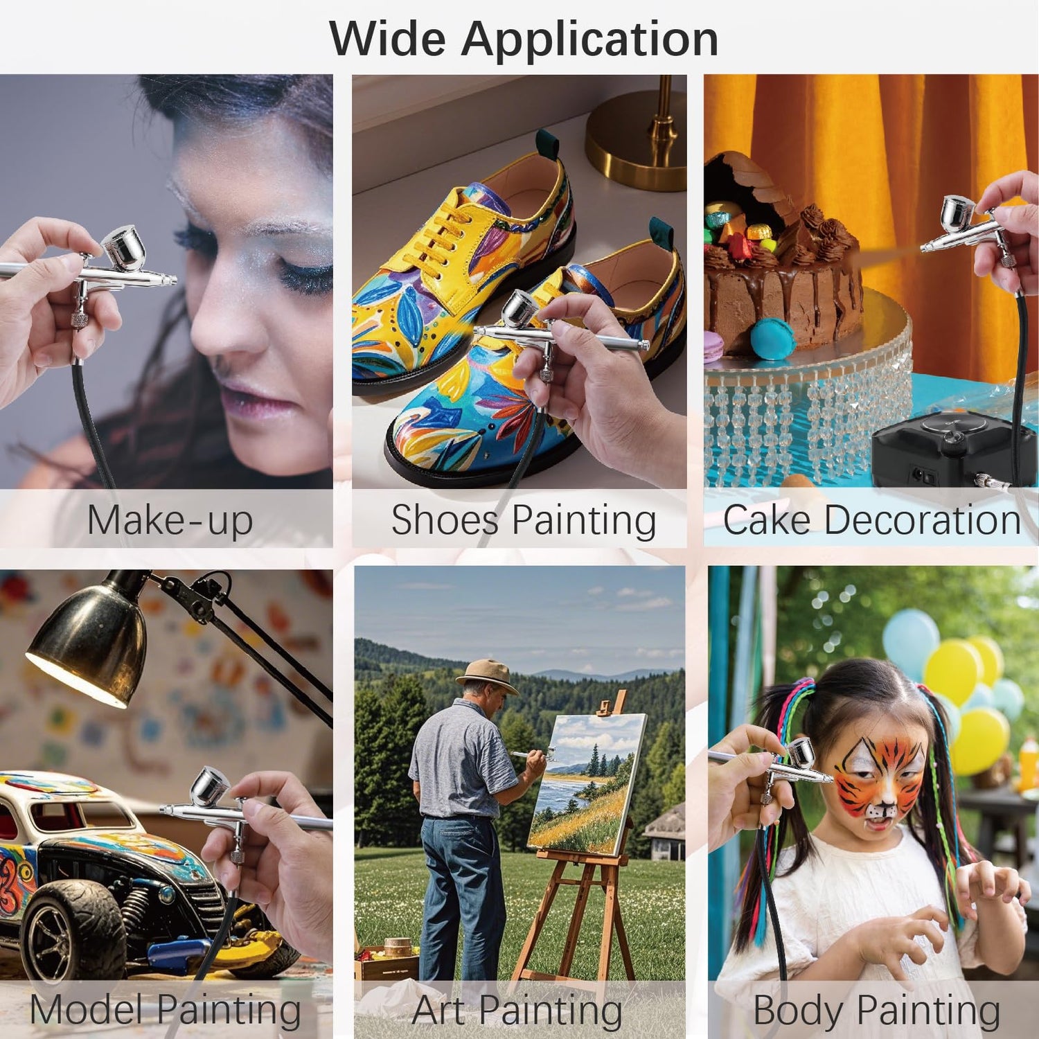 - [Automatic Stop & Adjustable Pressure]: Utilizes a brand new trigger system.The airbrush kit features an automatic stop function,when you are not painting,it will auto stop.It is user friendly airbrush.Adjustable spray volume and extremely high atomization for fine detail