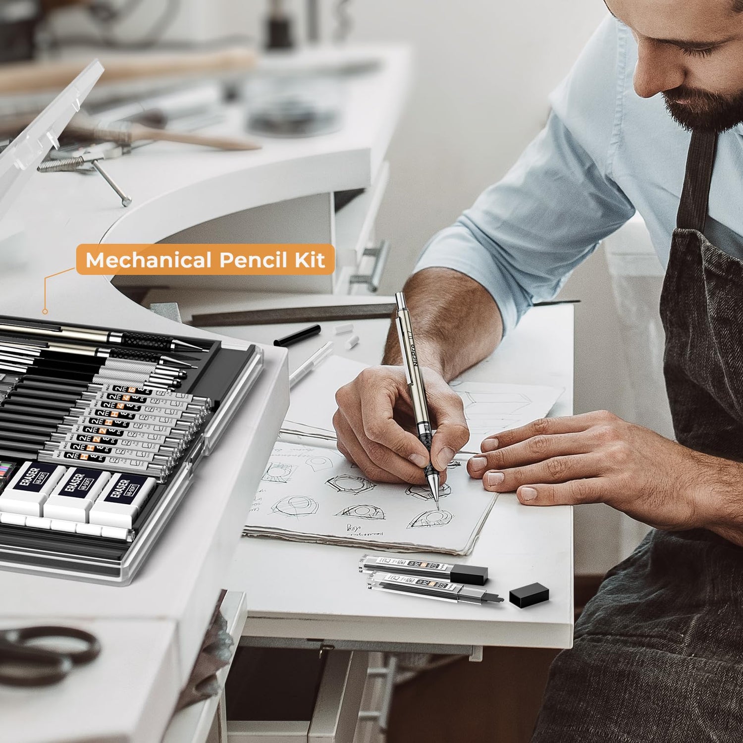 Nicpro Art Drawing Supplies Kit, Art Mechanical Pencil Set with 6 Metal Drafting Pencil 0.5 & 0.7 & 0.9 & 2mm, 100 Sheets 9 x 12'' Sketch Book, 20 Tube Lead Refills for Sketching