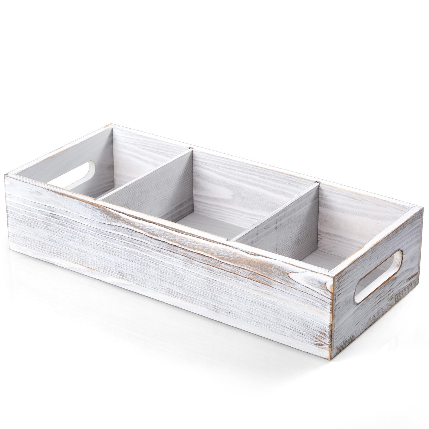 14 Inch Farmhouse White Bathroom Basket with Removable Dividers - 3 Comparments Wood Toilet Paper Basket for Back of Toilet Tank Topper - White Storage Organizer for Bathroom Pantry Organization
