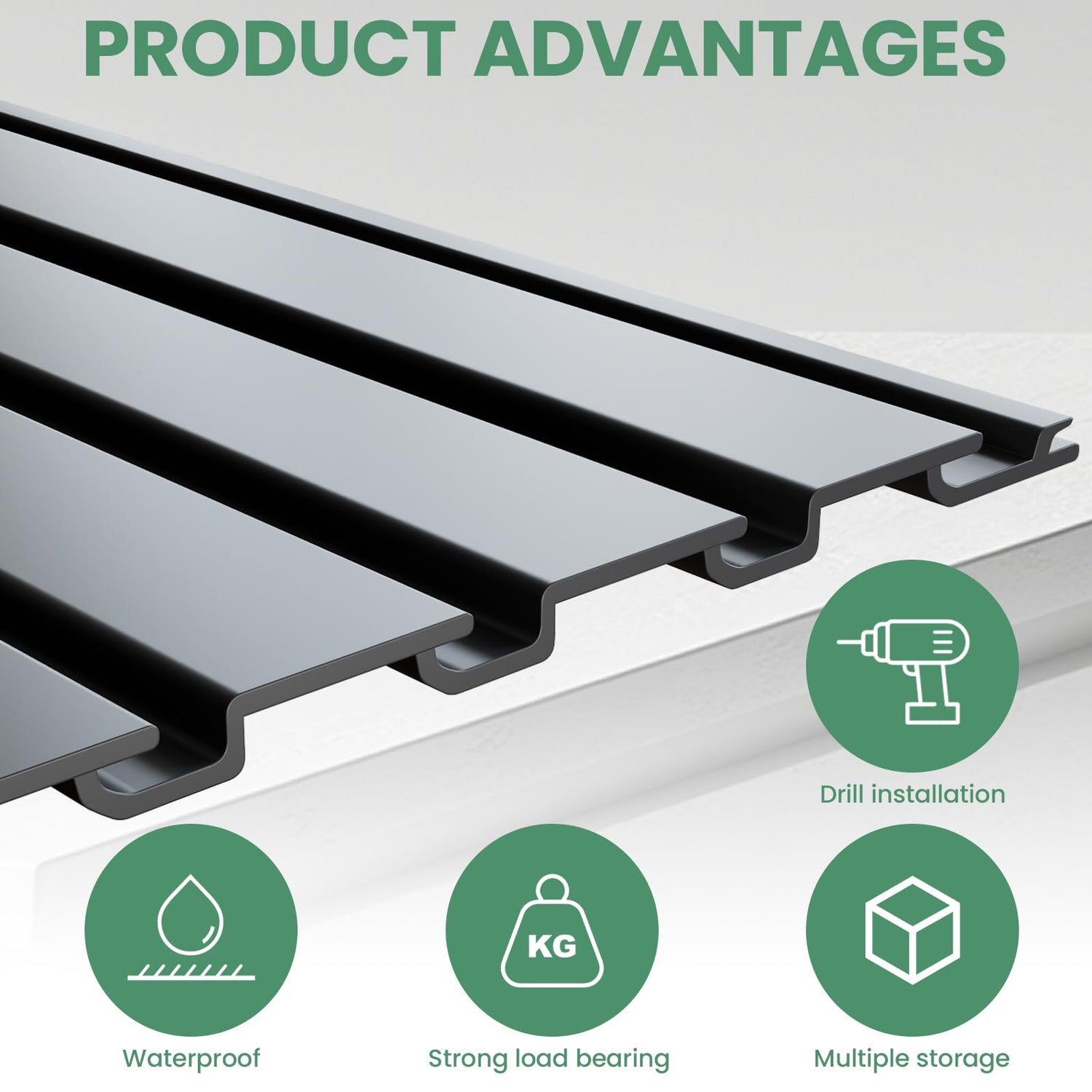 • 【Water and Moisture Barrier】100% waterproof and stain-resistant panels. Suitable for areas like bathrooms and spas. Transform walls into efficient storage space easily.