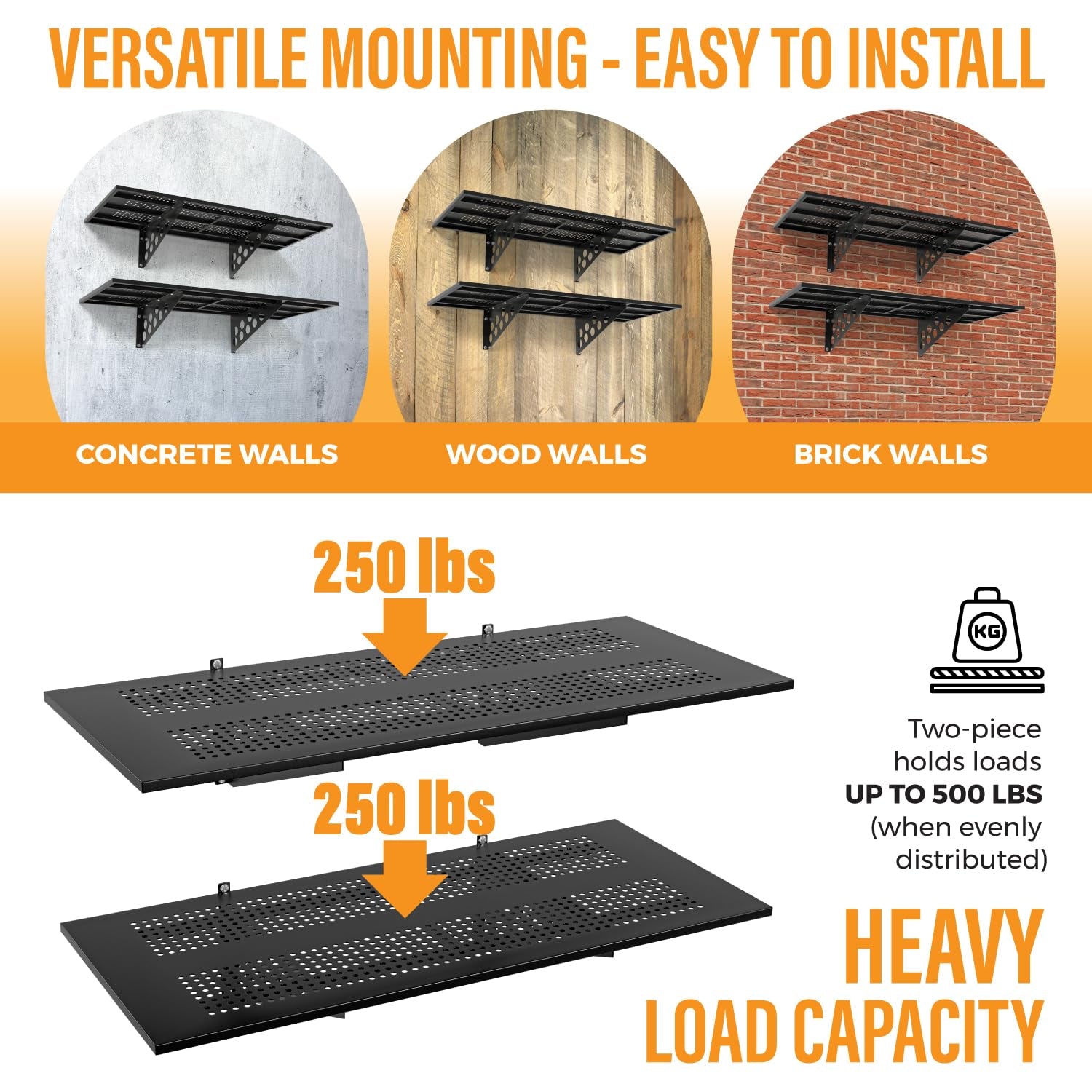 - LOAD CAPACITY: With a load capacity of 250 lbs for each individual 1.5x4 ft shelf and a total of 500 lbs for 2 shelves, it makes it easy to store most items in your garage.