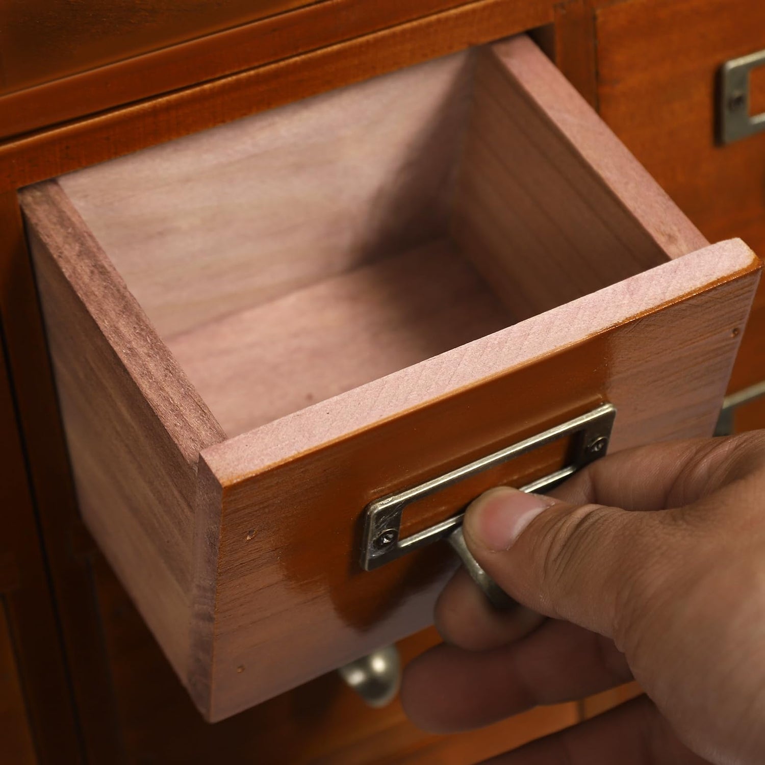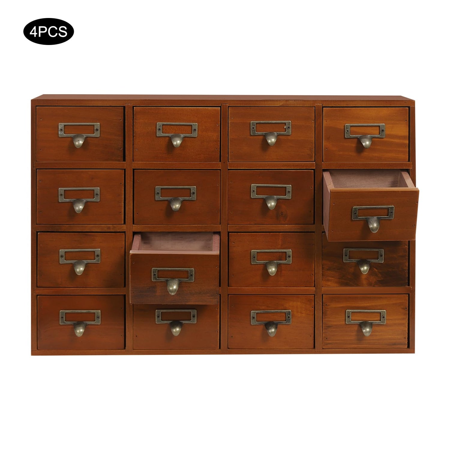 4 PCS Storage Cabinet, 64-Drawer Wooden Rectangle Storage Box With Label Holder And Handle, Traditional Apothecary Curio Cabinet,Storage Organizer For Pharmacy, Office, Porch, Living Room, Etc (Brown)