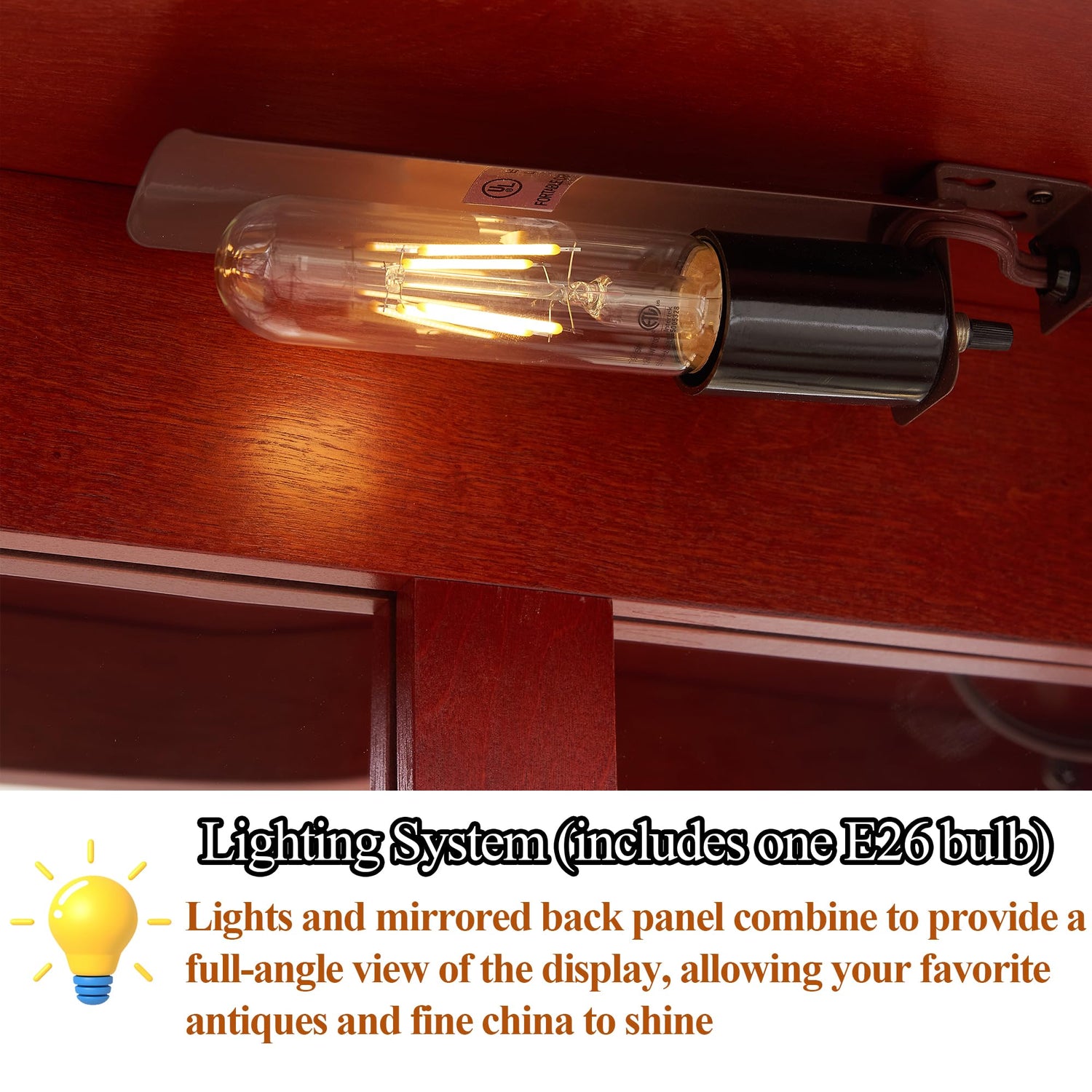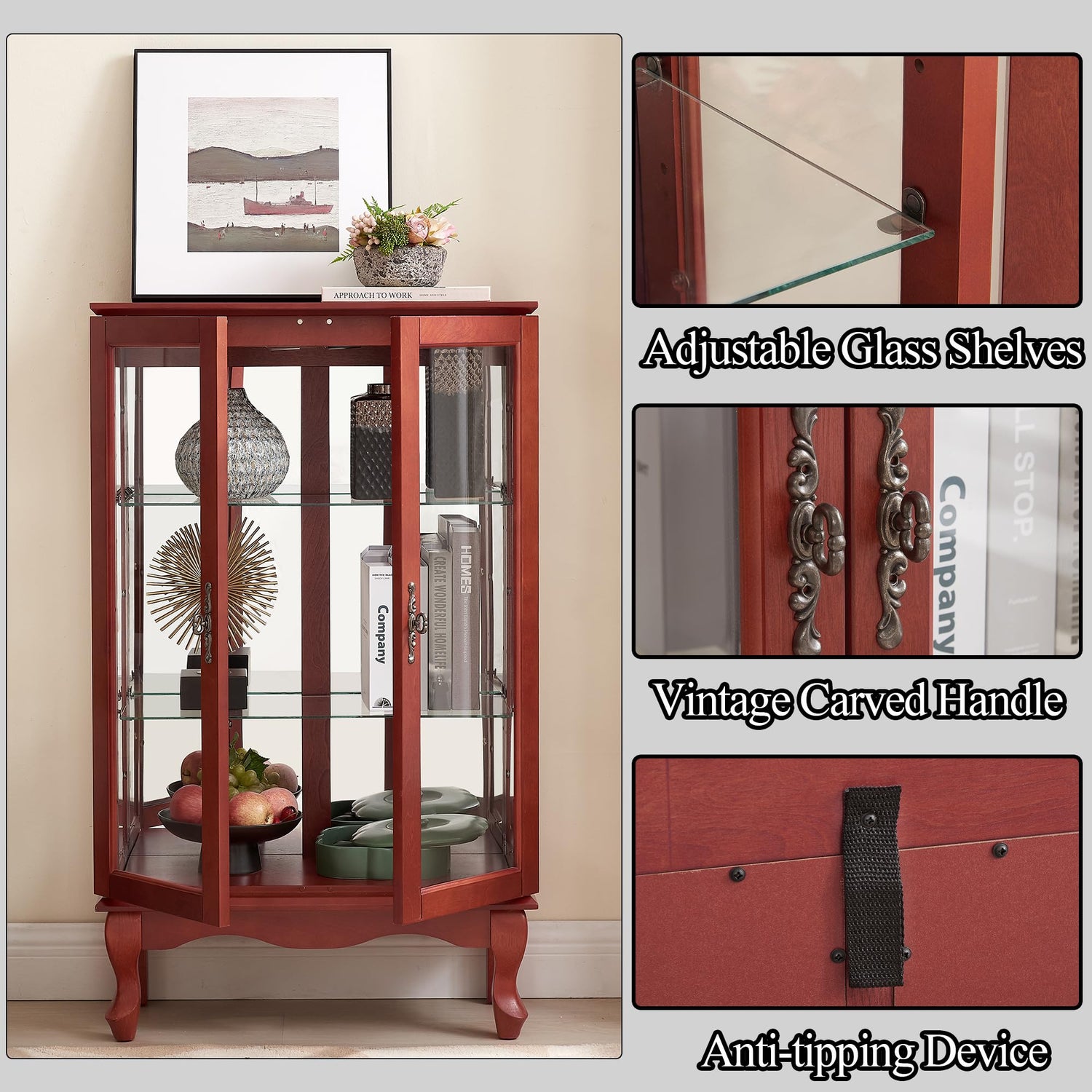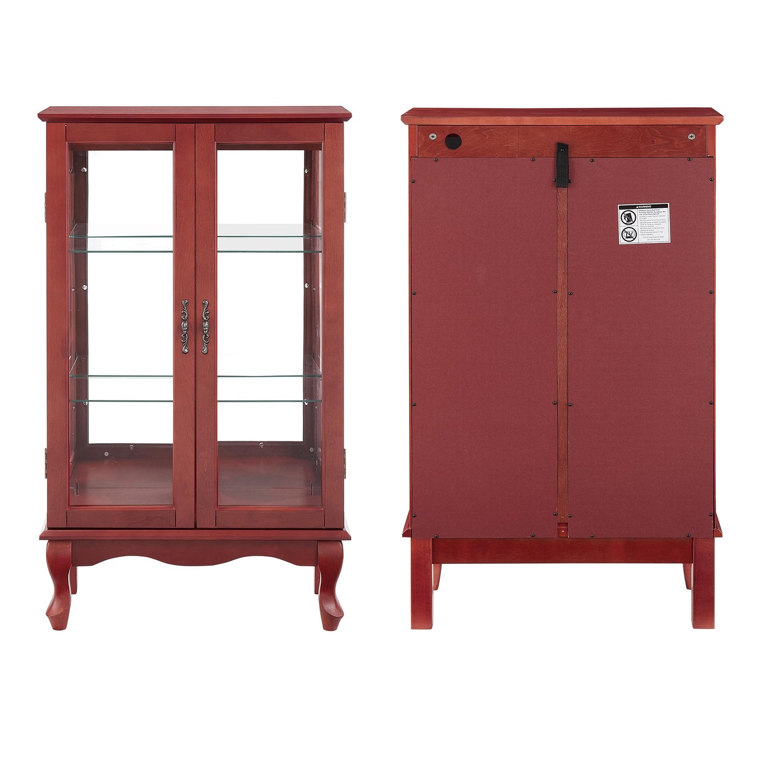 - 【Rugged Material】This glass curio display case with light is made of high quality solid and composite wood. The adjustable shelves and glass doors are made of high quality tempered glass that is unbreakable and suitable for long term use. The interior features 1 fixed wood shelf and 2 adjustable tempered glass shelves, each holding 15 to 22 pounds, making it easy to accommodate most storage needs, whether it's for books, wine, collectibles or more!