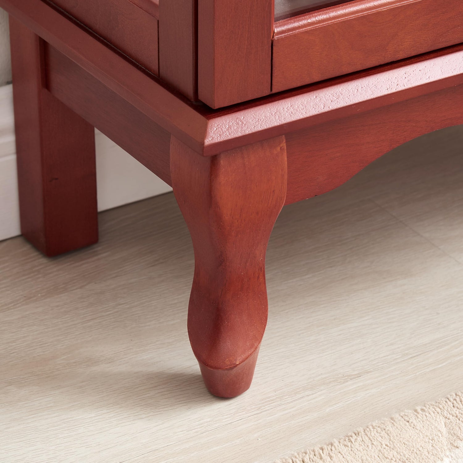- 【Versatile Storage Environment】43"H Curio Accent Storage Cabinet Overall Dimensions: 26"(W) x 12"(D) x 43.5"(H). This curio cabinet is extremely space efficient with 3 shelves for great storage. You can easily display your decorative items such as antiques, fine china and dinnerware. The two tiers of adjustable shelves allow for customized storage, simply move the pegs to the pre-drilled holes to meet your personalized storage needs. Antique cabinet doors have magnetic hardware for safe and stable opening and closing