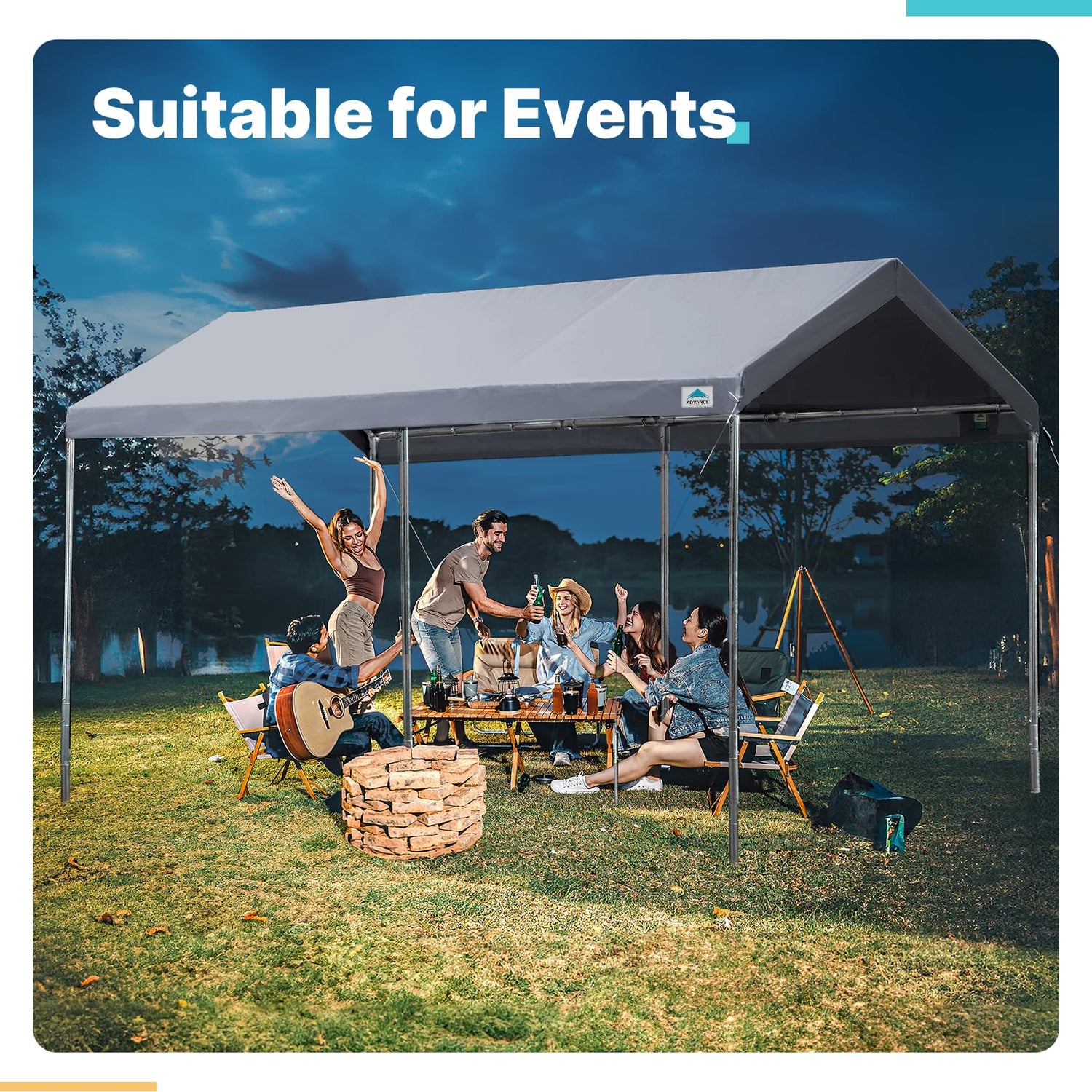 - 【Waterproof Canopy Cover】- This carport is made of heat-sealed, triple-layer 180g polyethylene fabric, which is Anti-UV, Waterproof, and can protect your car or boat against all four seasons elements, like sun, wind, rain, dust, hail, and snow.