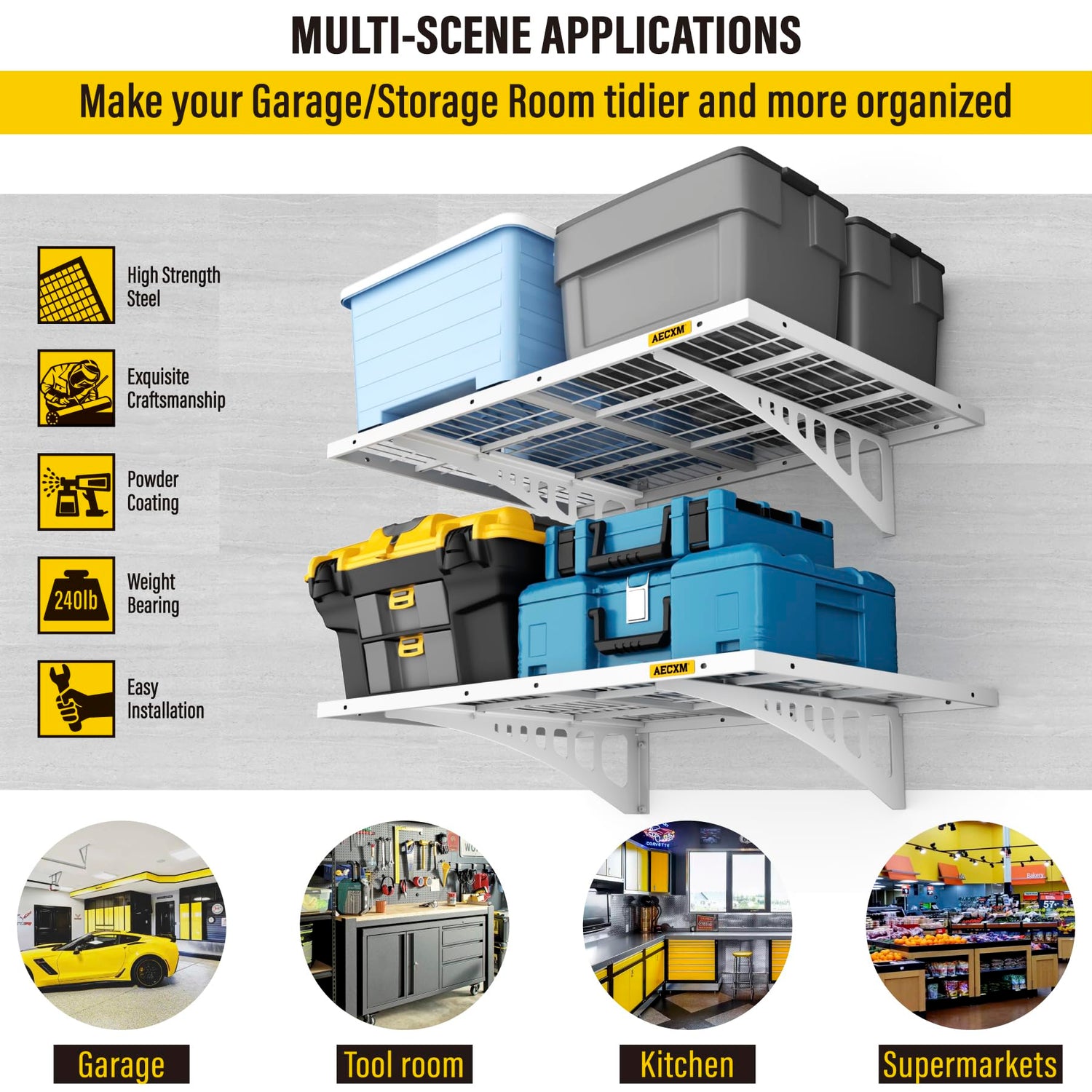 - Premium Materials: Our garage shelving features a rectangular tube frame paired with thick welded wire mesh for superior strength. Finished with a fine sand-texture, high-temperature powder coating, it delivers a sleek, modern, and perfectly flat design