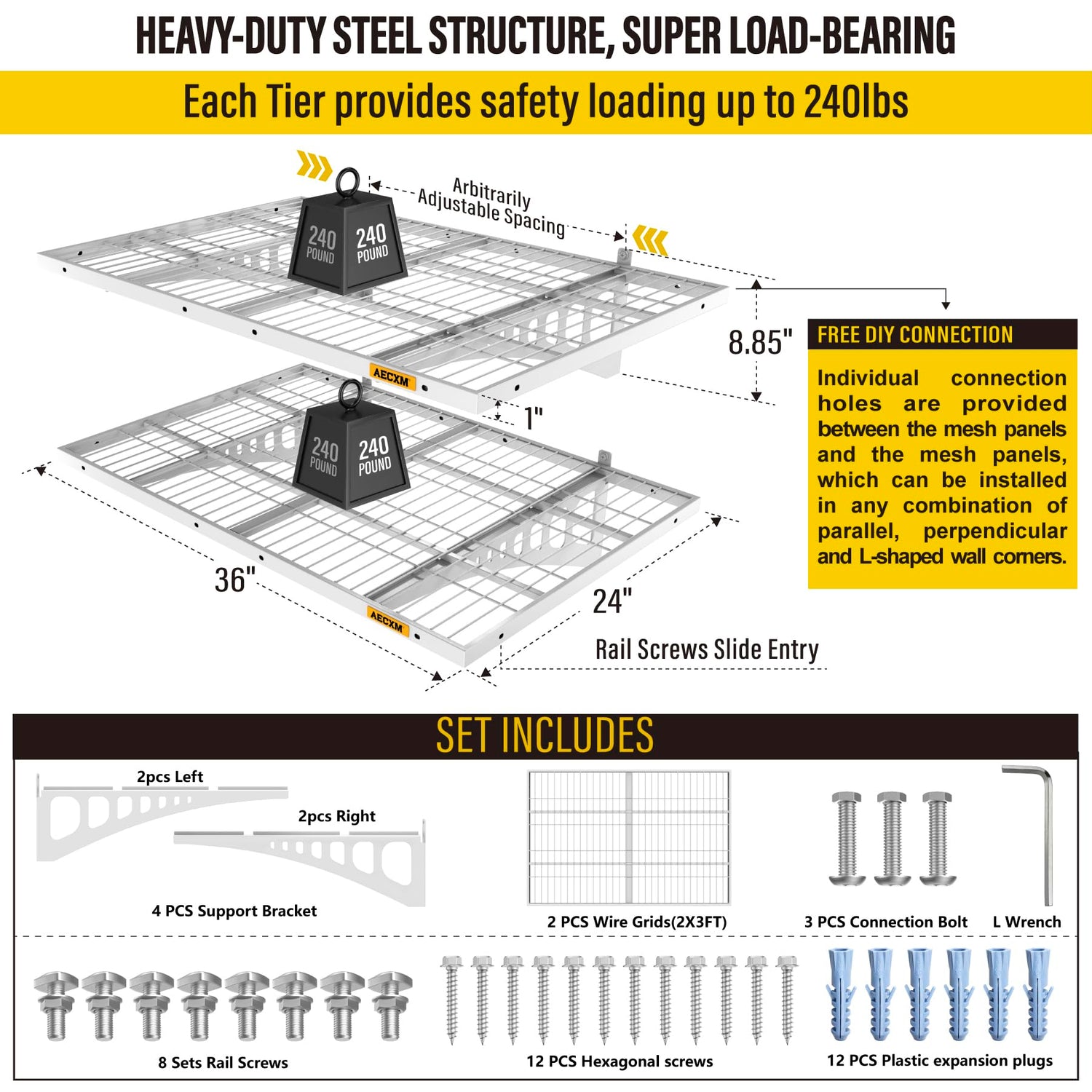- Customer Support: Aecxm offers full after-sales service to protect your purchase. Contact us anytime for assistance. (Note: For brick or concrete walls, use expansion anchors to securely fasten the heavy duty wire shelving after drilling.)