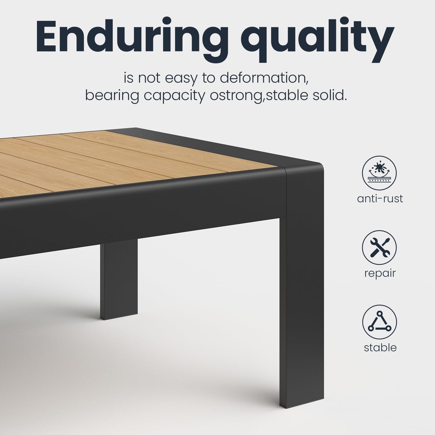 Aeeiua Outdoor Rectangle Patio Aluminum Coffee Tables for Outside, All Weather Patio Slatted Tabletop for Indoor or Outdoor Use