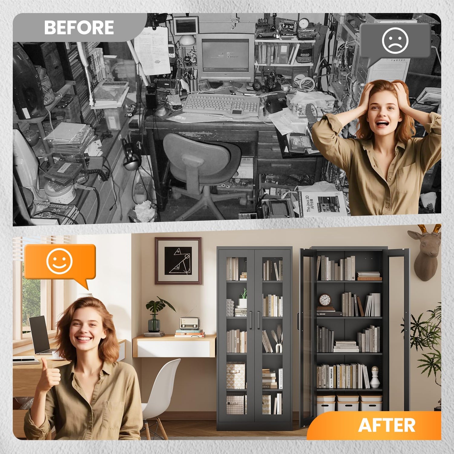 - 【ULTRA SAFE 3C TEMPERED GLASS】- Protect your prized collections with AFAIF's glass display cabinet featuring 3C certified tempered glass doors 4x stronger than regular glass.The 0.28" crystal-clear panels resist scratches/impacts while showcasing your action figures, china cabinets with glass doors collections or liquor cabinet bottles in museum quality clarity. Built with 0.8mm thickened steel and anti-rust powder coating,this metal cabinet with glass doors holds 180lbs per shelf –ideal for curio cabinets or delicate perfume display cabinet arrangements.