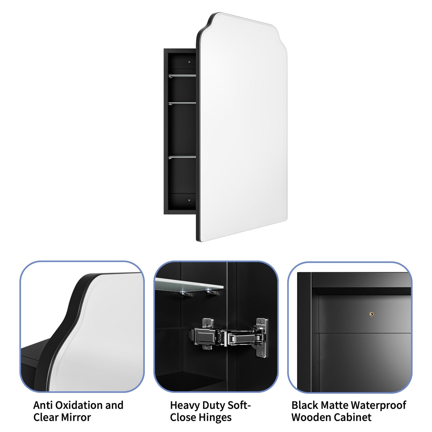 - Sturdy and Heavy-Duty: The sustainable and waterproof thickened wooden cabinet is adopted, as well as the anti-oxidation mirror, which ensures the durability of the medicine cabinet.