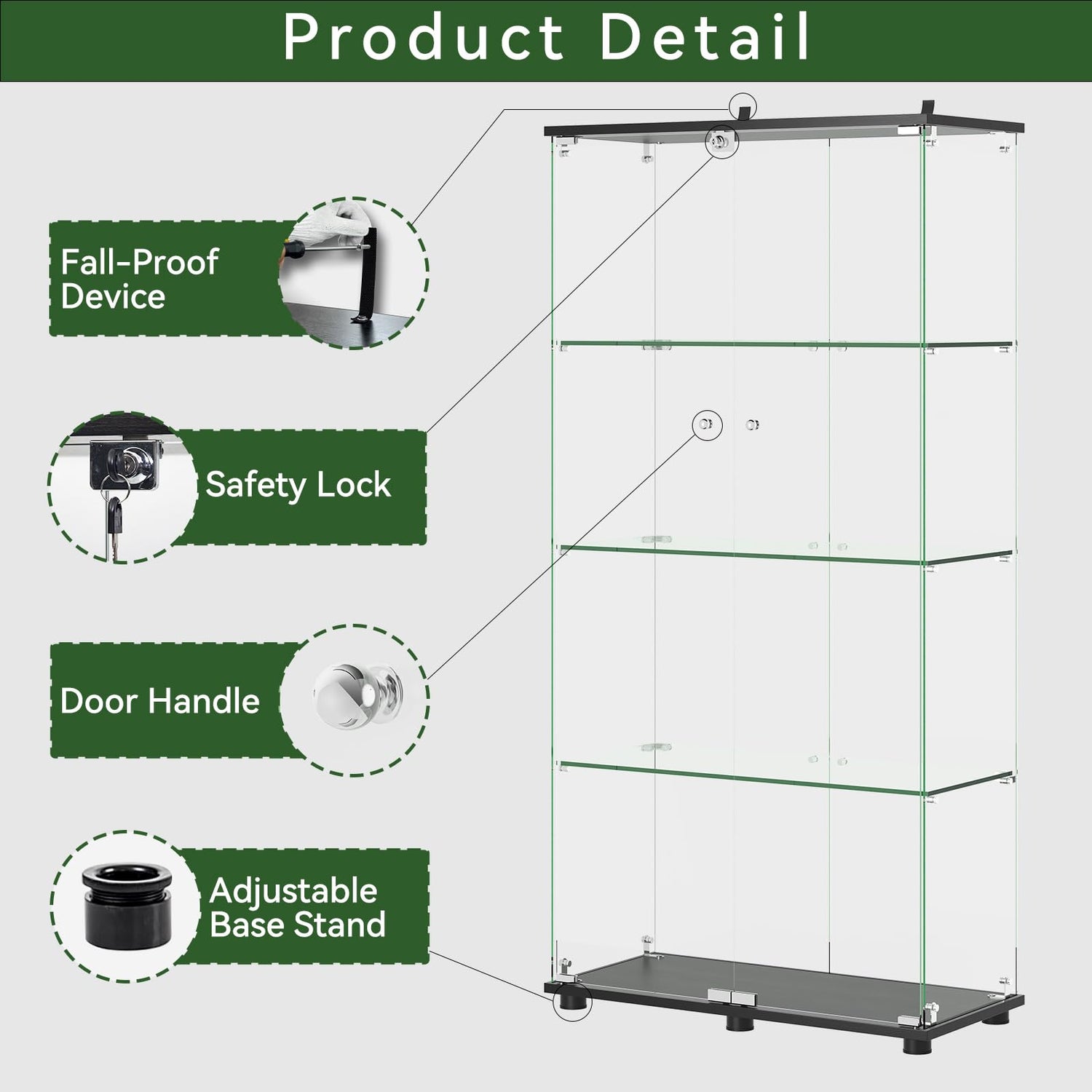 - LOCKING DOUBLE DOORS & EASY TO ASSEMBLE - Our display cabinet with glass doors has detailed assembly instructions and accessory packs, which can be easily assembled within 20 minutes. The glass cabinet display case is equipped with safe, lockable double doors to ensure that your items remain safe and prevent dust or accidental damage