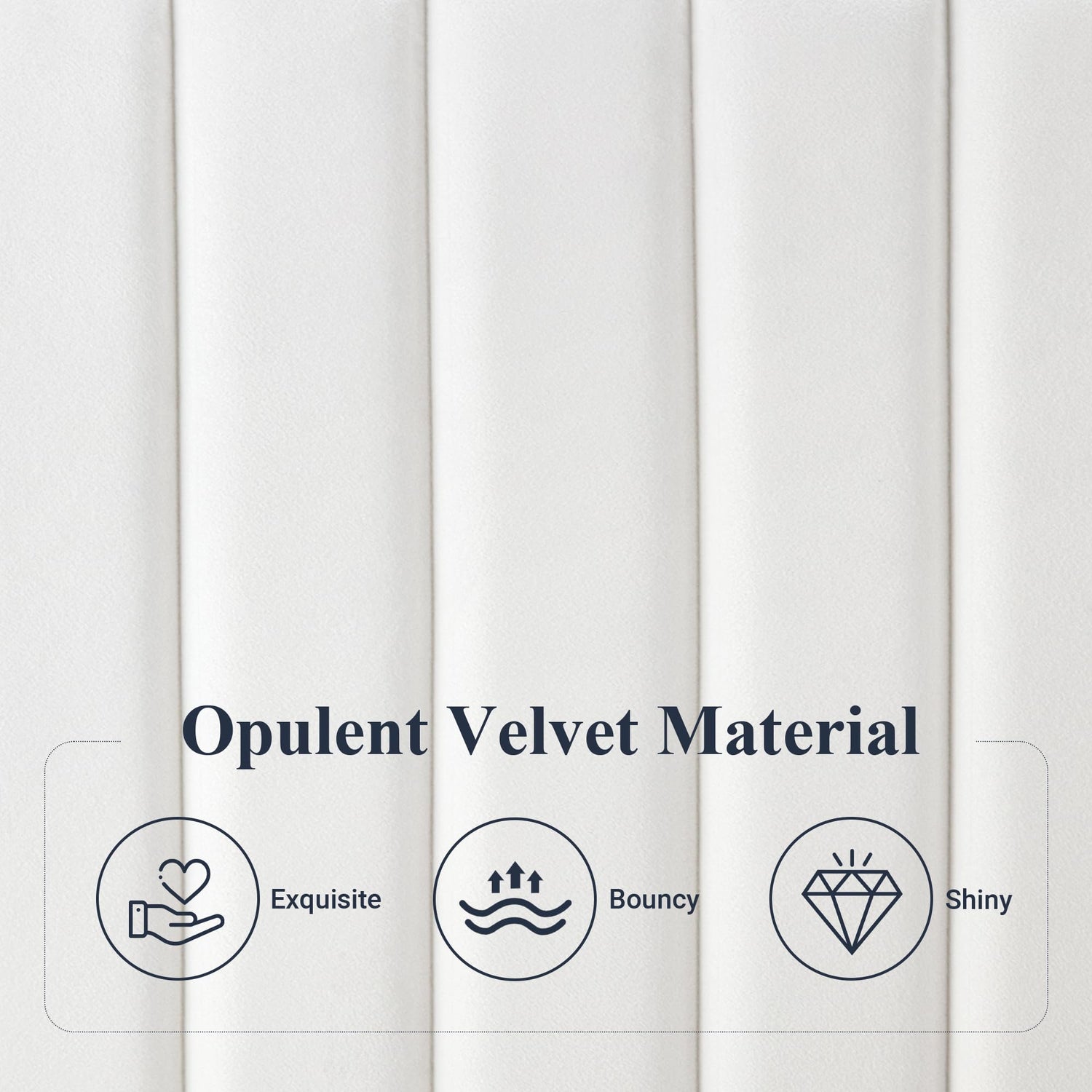 Allewie Full Bed Frame, Velvet Upholstered Platform Bed with Adjustable Vertical Channel Tufted Headboard, Mattress Foundation with Strong Wooden Slats, Box Spring Optional, Easy Assembly, White