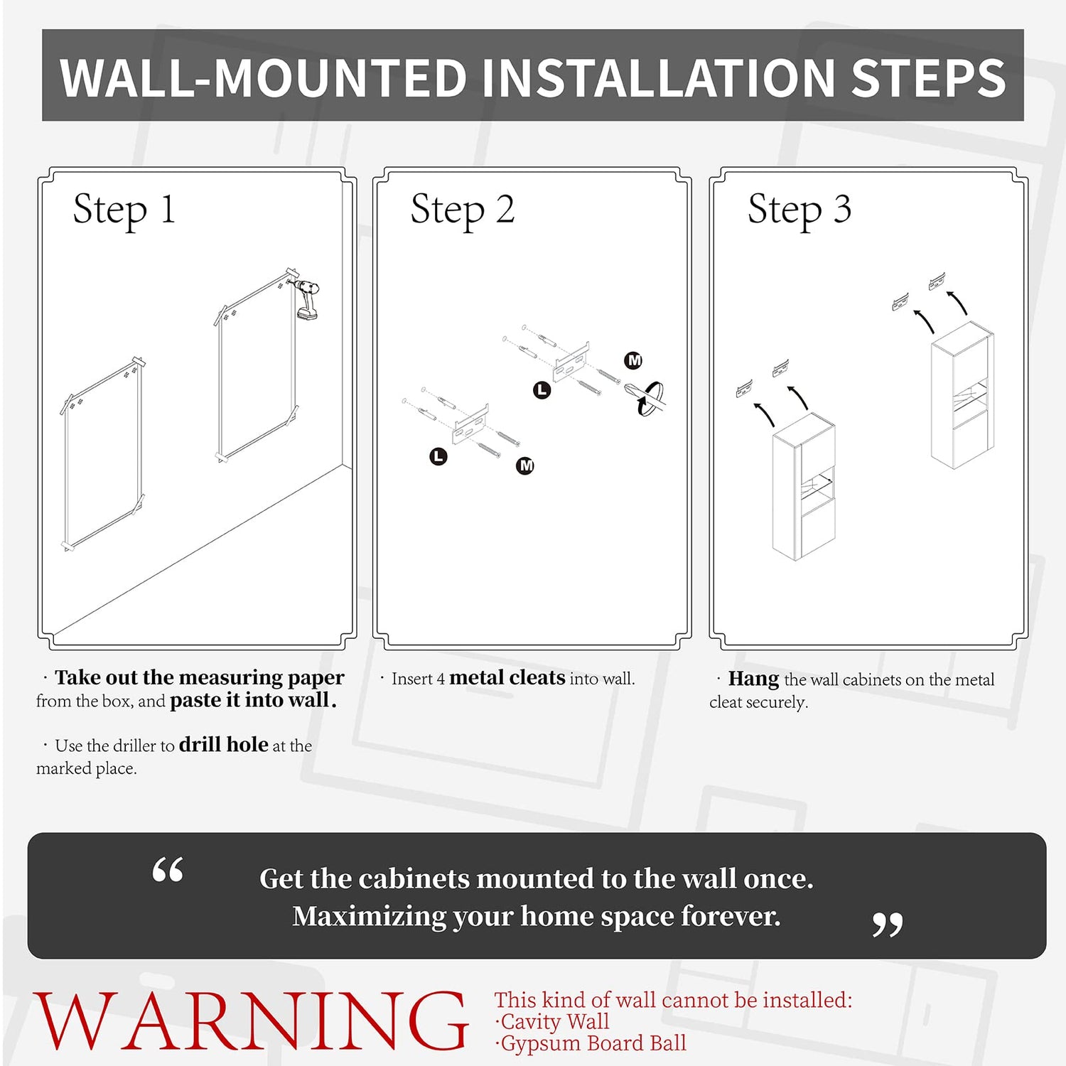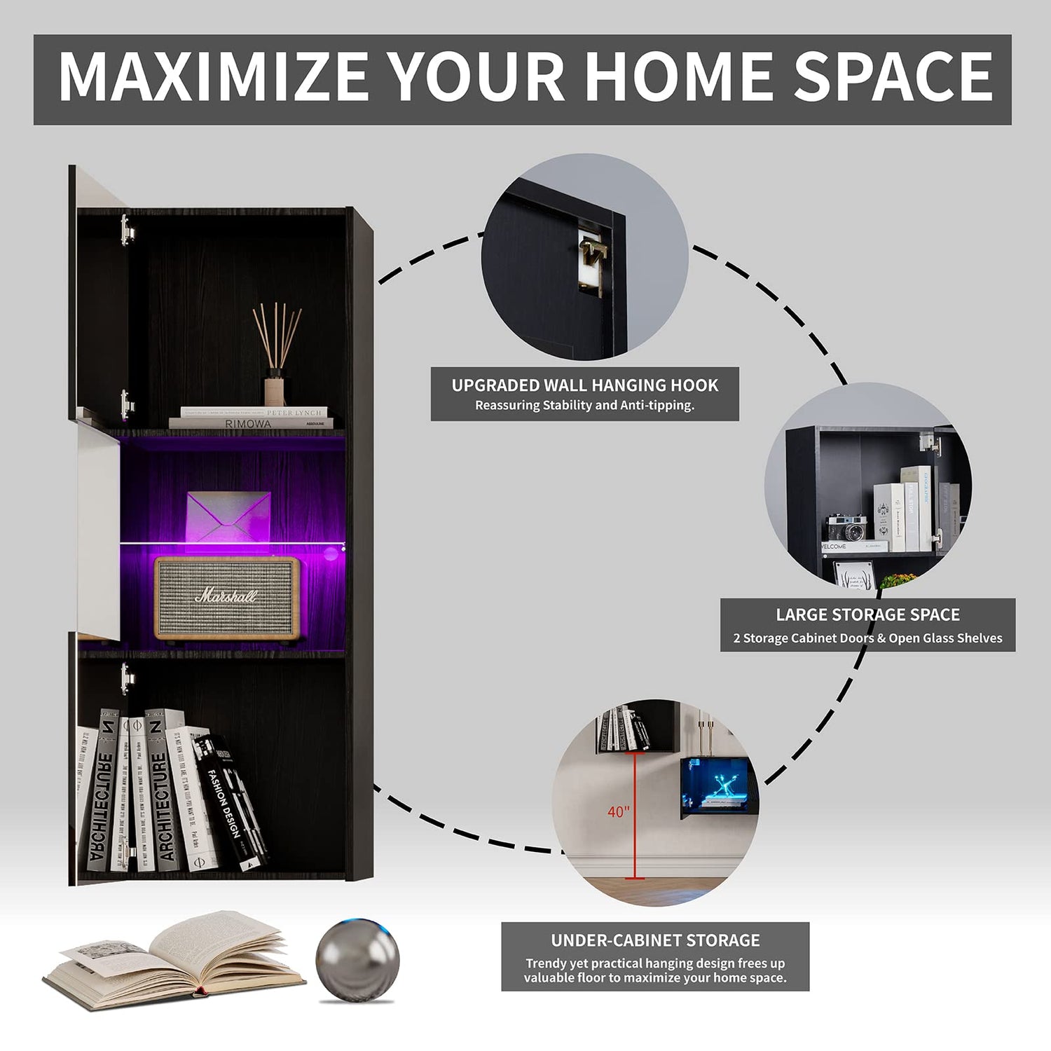 - [20-COLORS LED LIGHTS] The wall-mounted cabinets come with LED kit that contains 20 changeable colors, 5 levels dimmer, 10 levels speed and 22 dynamic modes, customizing unique lighting experience in your home. Remote control included.