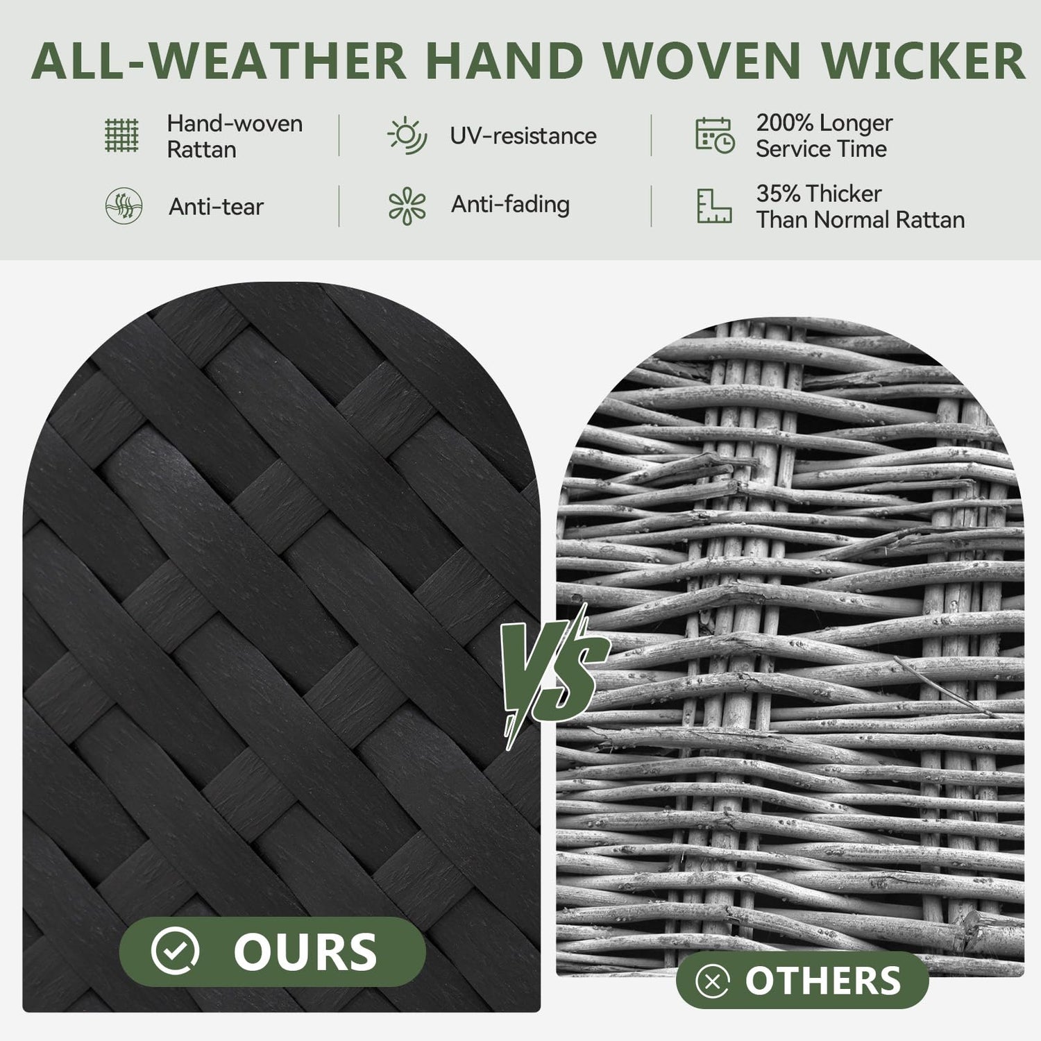 - 【COMMERCIAL-GRADE DURABILITY】Constructed with powder-coated galvanized steel frames and UV-resistant PVC rattan, this backyard furniture set withstands extreme weather conditions. The rust-resistant patio conversation set maintains structural integrity through seasons of use.