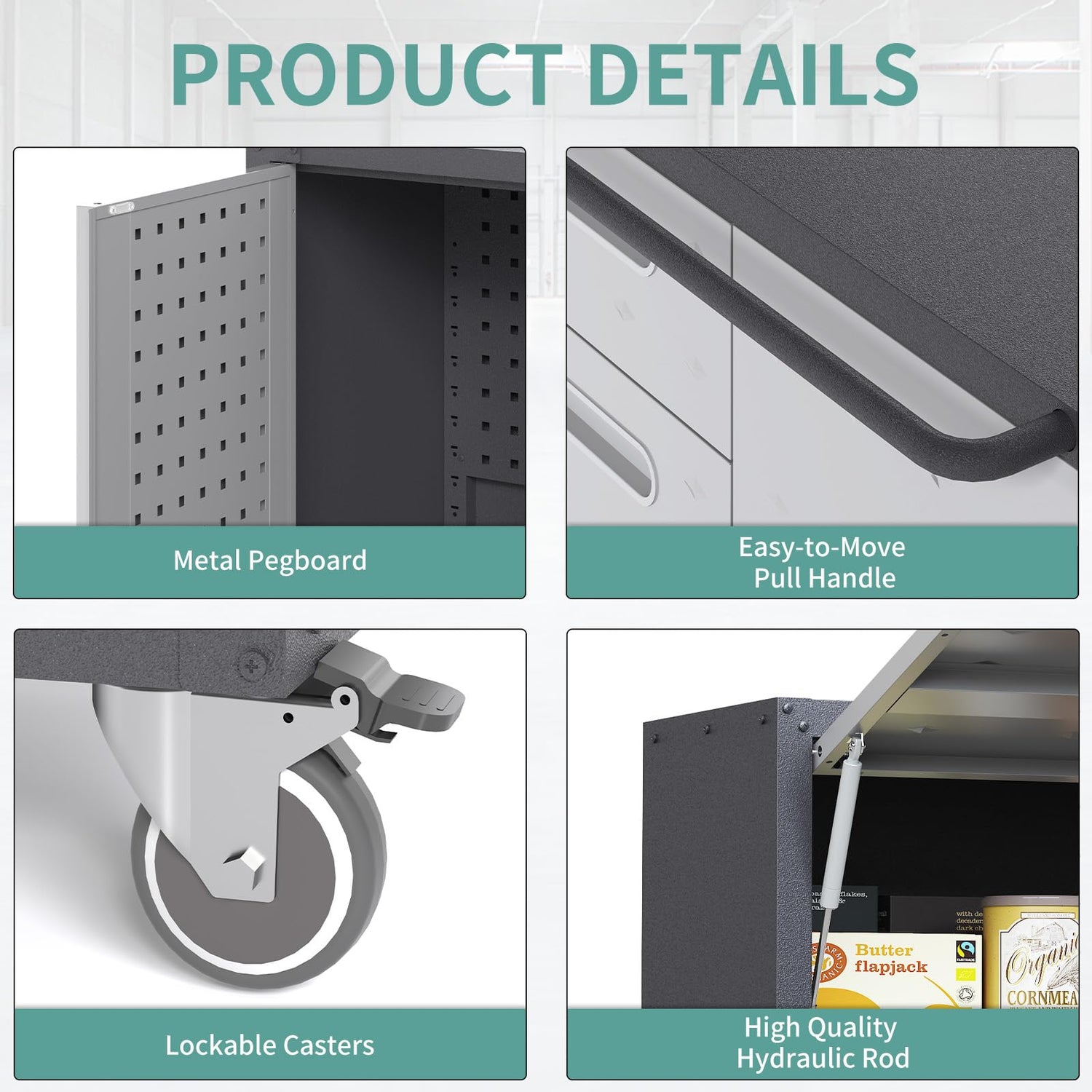 - 【Convenient Mobility】With its ergonomic handles and 360° rotating wheels, this rolling tool cabinet offers easy maneuverability in any direction. The wheels are detachable and lockable, providing stability during use and preventing unwanted movement. Effortlessly move and position the metal cabinets with doors and shelves wherever you need it, making your work more efficient.