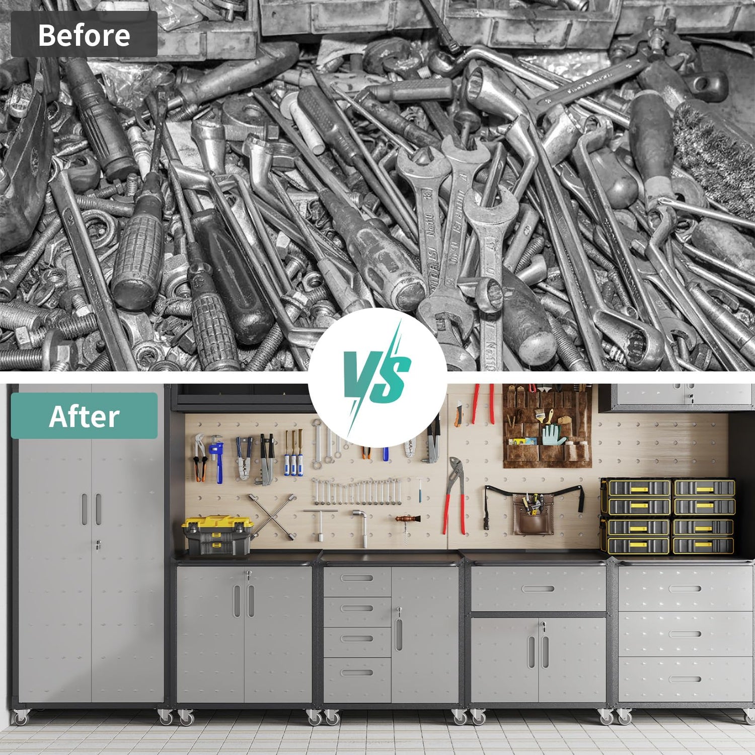 - 【Lockable and User-friendly Design】All cabinets are fully lockable for maximum security, ensuring your tools safe. In addition, Easy-to-grab handles and high quality drawers provide fully convenient for your daily use.And the mount type of freestanding and wall mounted are both allowed.