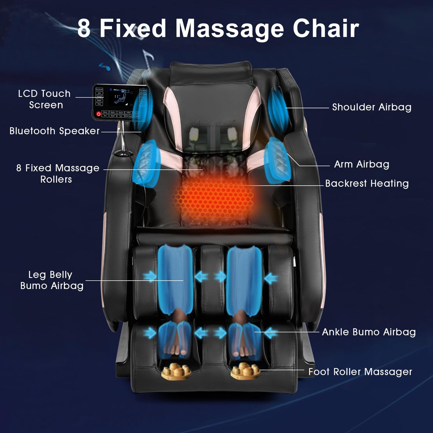 - Massage Chair Full Body - Equipped with 8 massage rollers that target the neck, back, and waist, this massage chair also provides full-body airbag compression for ultimate relaxation. The built-in waist and upper legs heating functions add warmth to the massage, helping to relieve muscle tension and increase comfort. Frame made of FSC Certified wood.