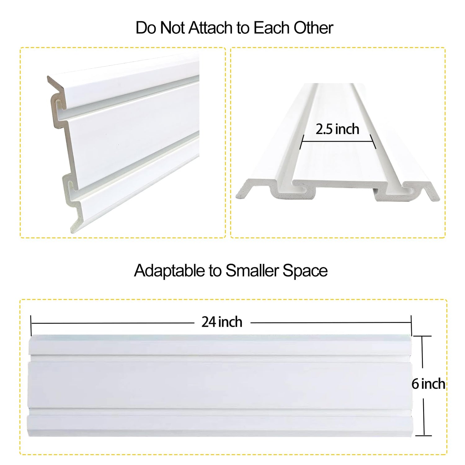 - Adaptability to Smaller Spaces: Our slatwall panels stand alone; their smaller individual size allowing them to fit into tight spaces or niche areas conveniently; they do NOT attach to each other