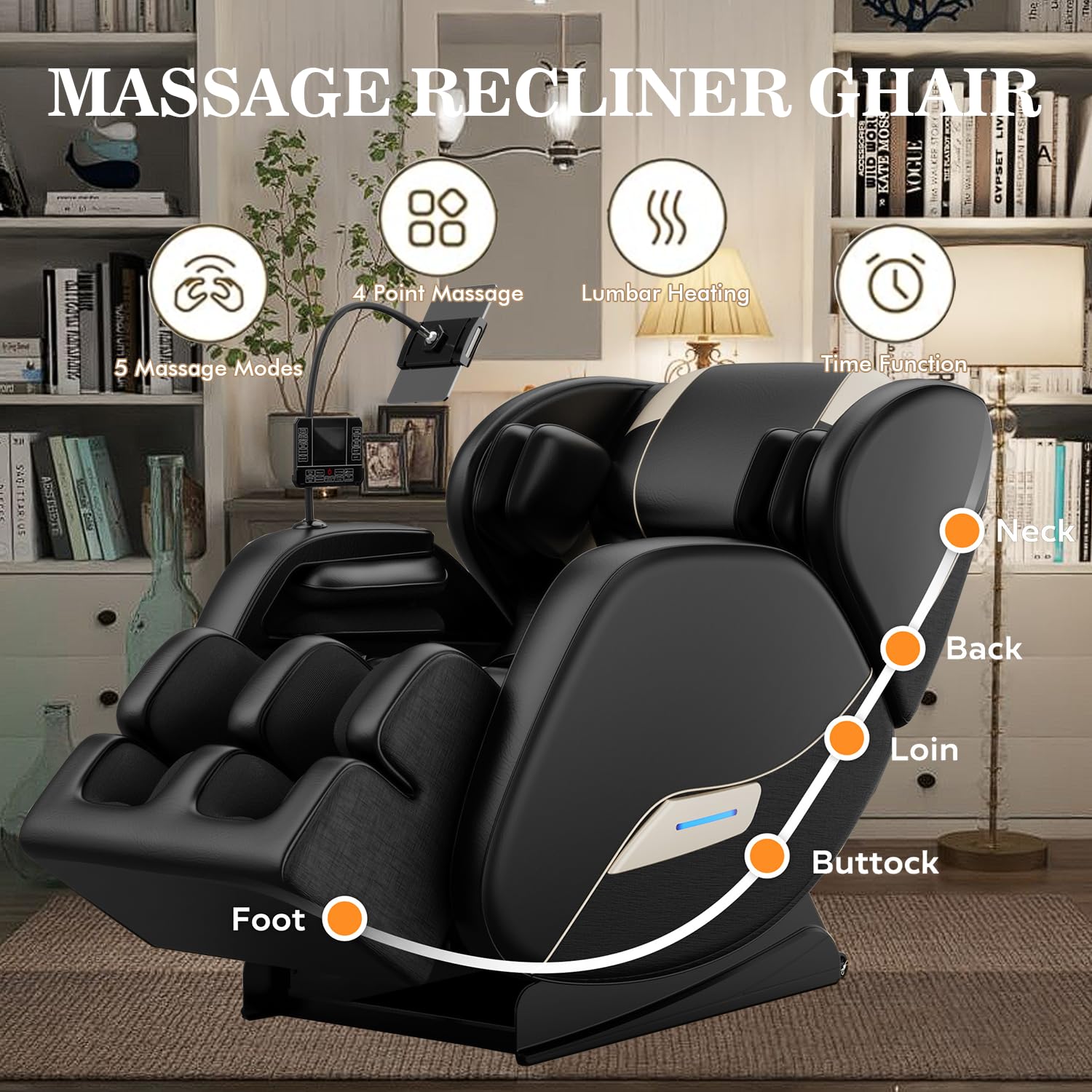- [Full-body Massage] This massage chair features 6 fixed rollers on the back to target your neck, back, and waist, with 5 preset automatic modes to choose from. It also offers heating functions for both the waist and legs to improve blood circulation and relieve muscle soreness. Additionally, the zero-gravity massage chair is equipped with multiple airbags that provide a soothing massage for your shoulders, arms, and calves, with three adjustable intensity levels for a personalized experience.