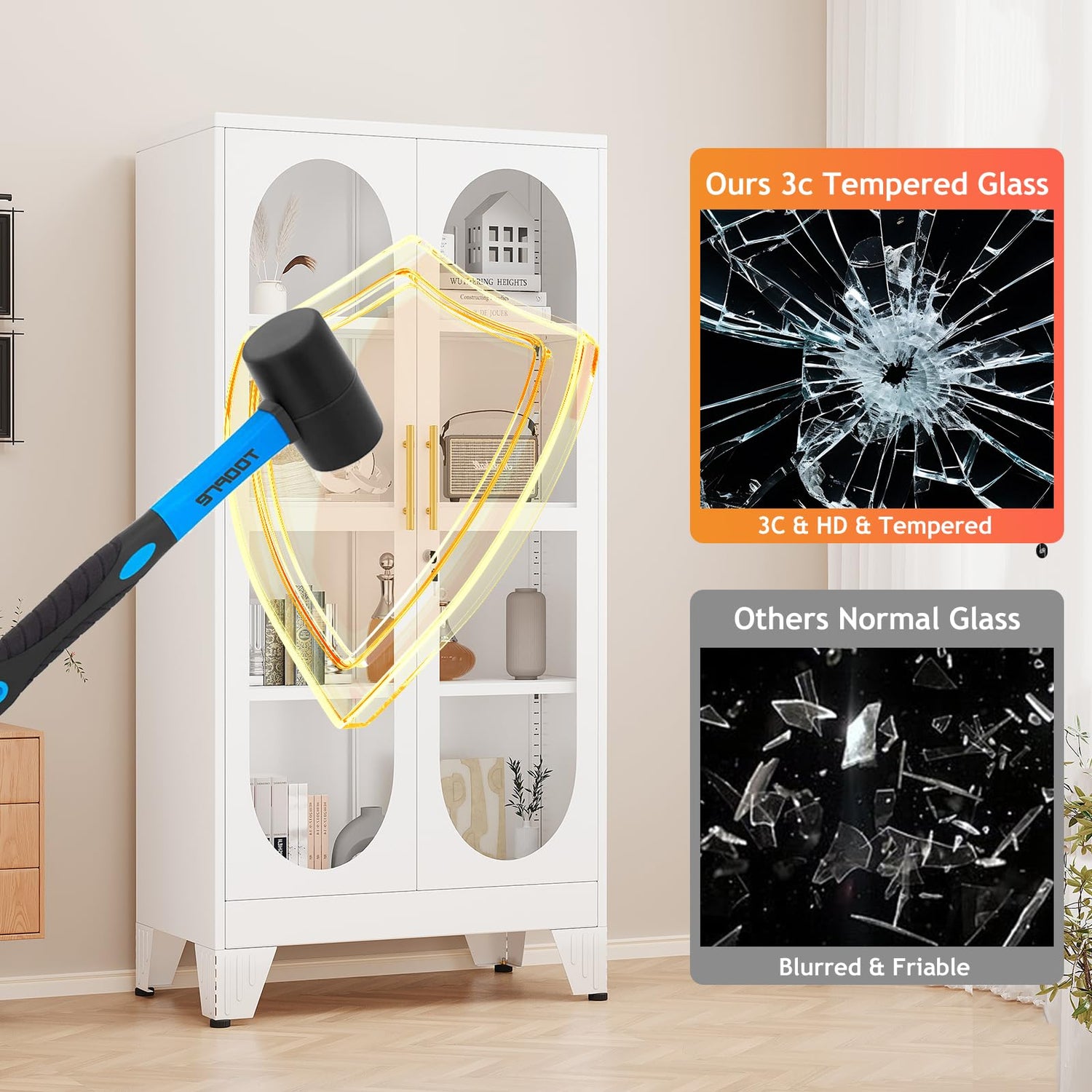 - Locking Display Cabinet: Show off your collectibles and decor with this stylish glass cabinet, ideal for your living room, kitchen, or home. Crafted with 3C-certified tempered glass, it offers high transparency, scratch resistance, and durability, ensuring your items are always clearly visible and secure.