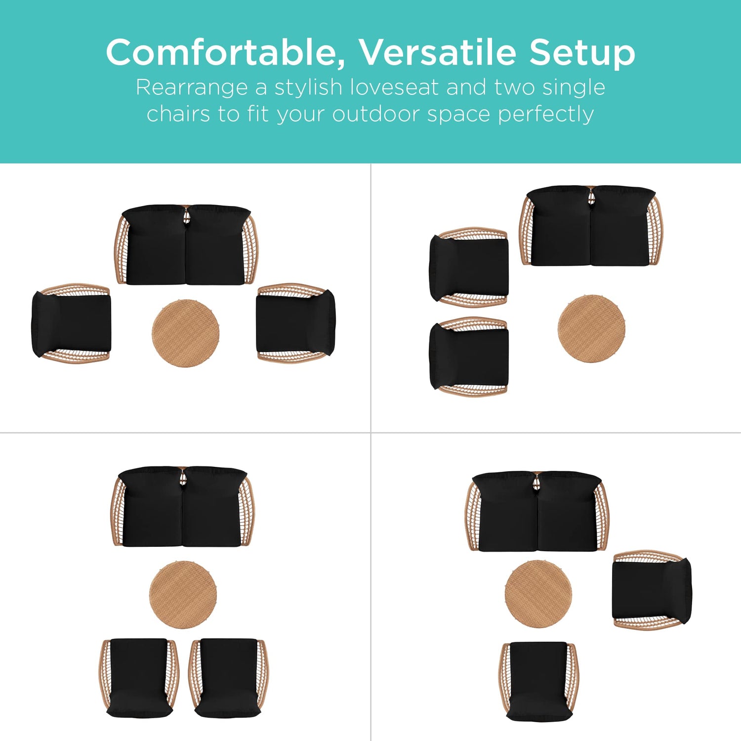 Best Choice Products 4-Piece Outdoor Rope Wicker Patio Conversation Set, Modern Contemporary Furniture for Backyard, Balcony, Porch w/Loveseat, Plush Cushions, Coffee Table, Steel Frame - Black